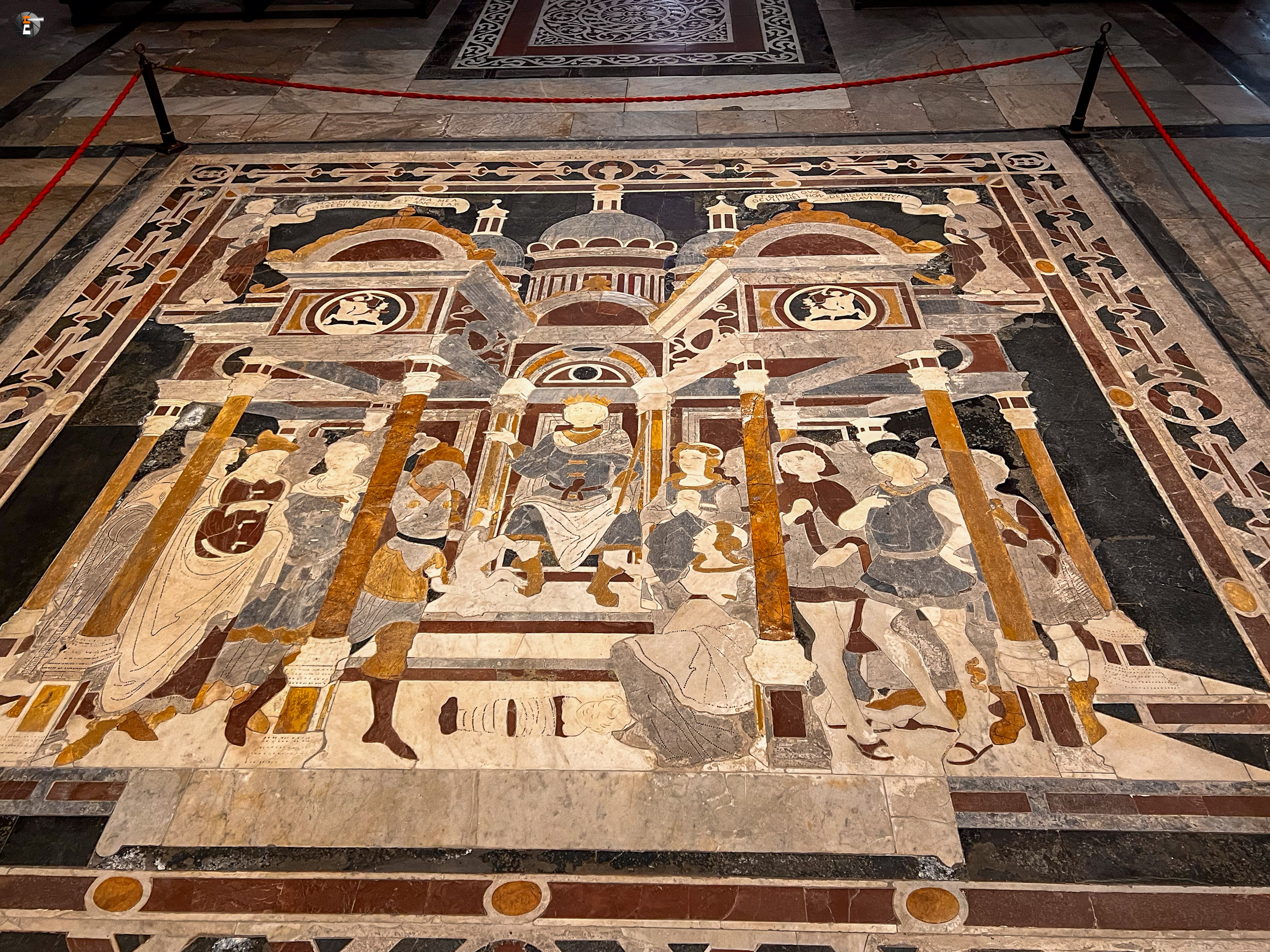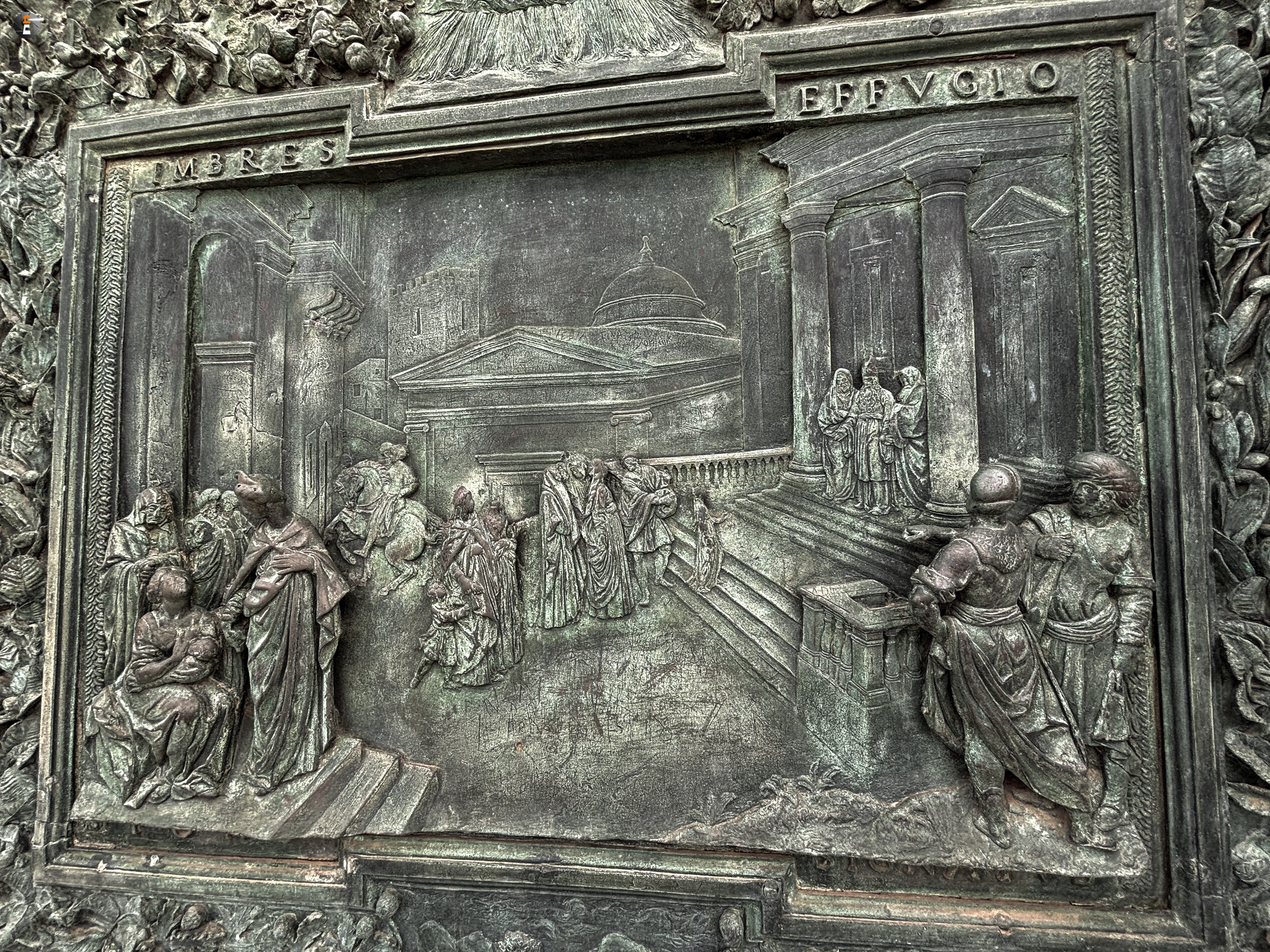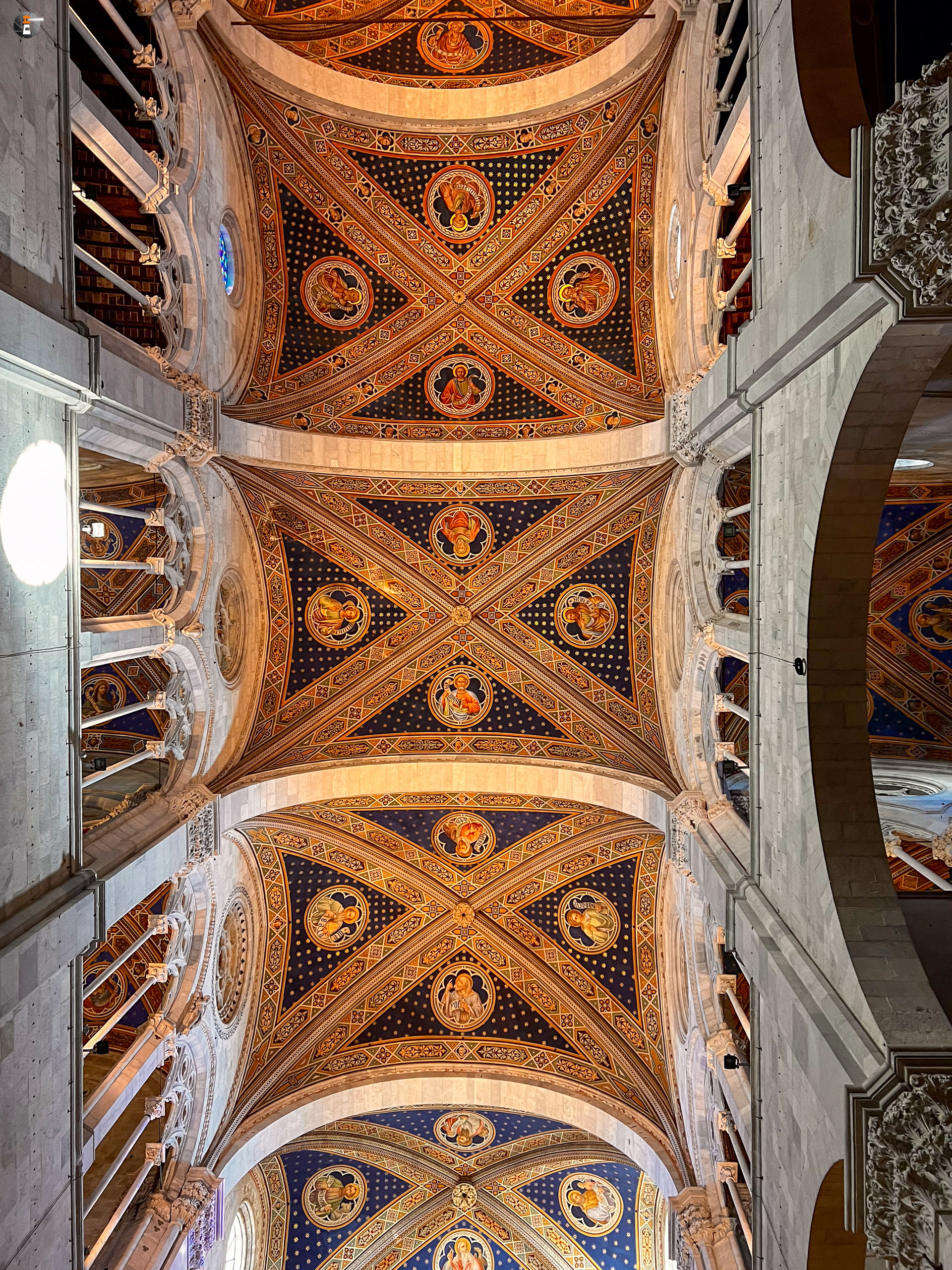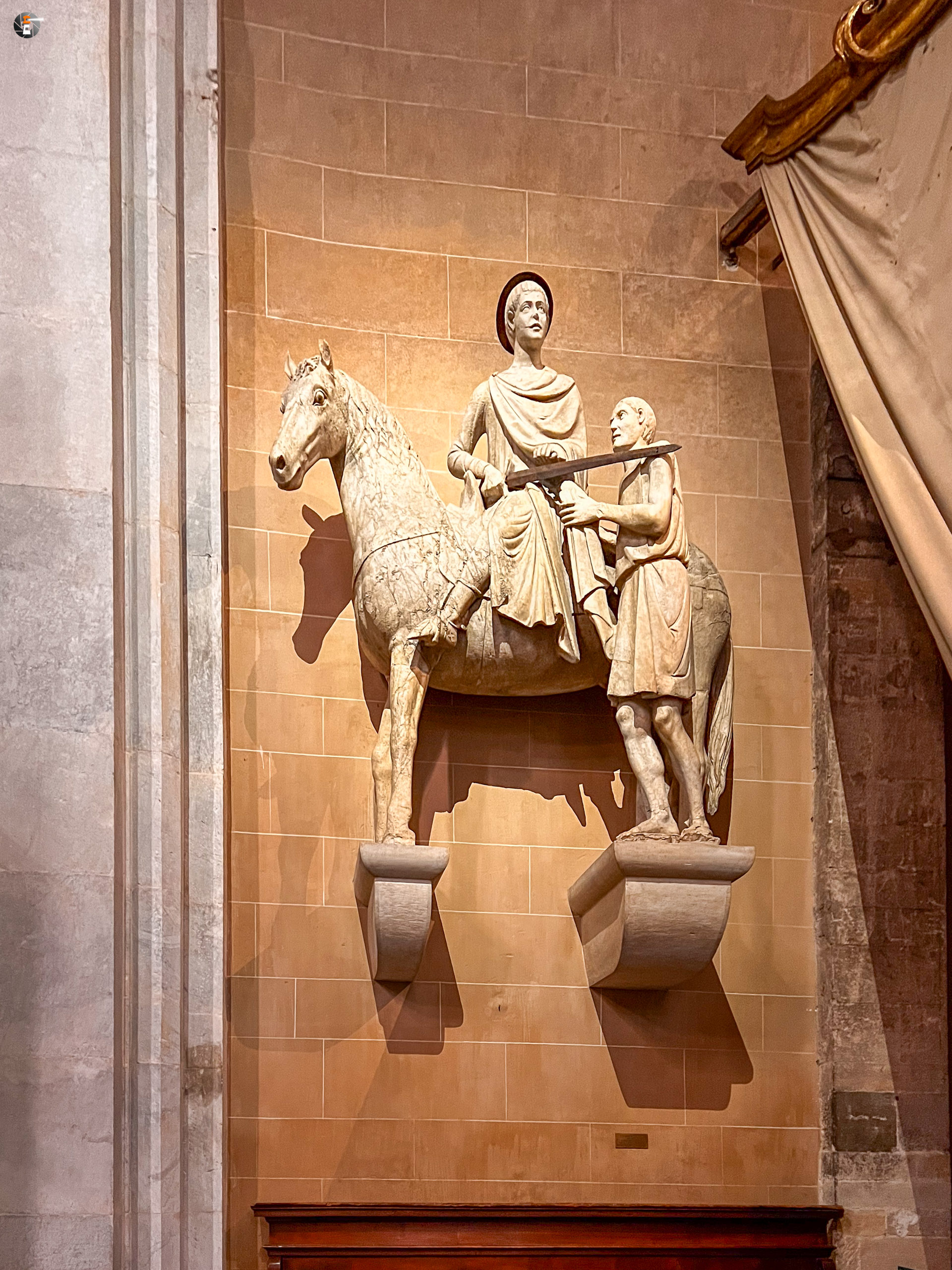 Im Anschluss packten wir die wenigen Sachen, die wir mit- und getreu unserem Motto – überall im Raum verteilt hatten, wieder in die Fahrradtaschen und drehten noch eine Runde durch Lucca. Heute wollten wir dem Hl. Martin in seinem Dom noch einen Besuch abstatten. An einem Vormittag im Oktober ist zumindest in Lucca noch nicht so viel los und so waren wir in der Kirche auch nahezu allein. Außer Sankt Martin hat die Kirche auch noch ein Fingerlabyrinth, welches sogar älter sein könnte, als jenes zum Verwechseln ähnliche in Chartres. In einem der Seitenaltäre sehen wir Tintorettos Abendmahl, anderenorts hängt so etwas in Galerien, hier findet man die Alten Meister eigentlich in jeder größeren Kirche. Außerdem ist die Luccheser Kathedrale eine der Kirchen, bei der man mit dem Portal parallel zum Kirchbau angefangen hat. Dieses steht nun also mit einem gewissen Abstand zur Kirche und hat von außen auch noch apotropäische Säulen, ein Wort, das Jens heute neu gelernt hat und deshalb unbedingt hier untergebracht werden muss 😉