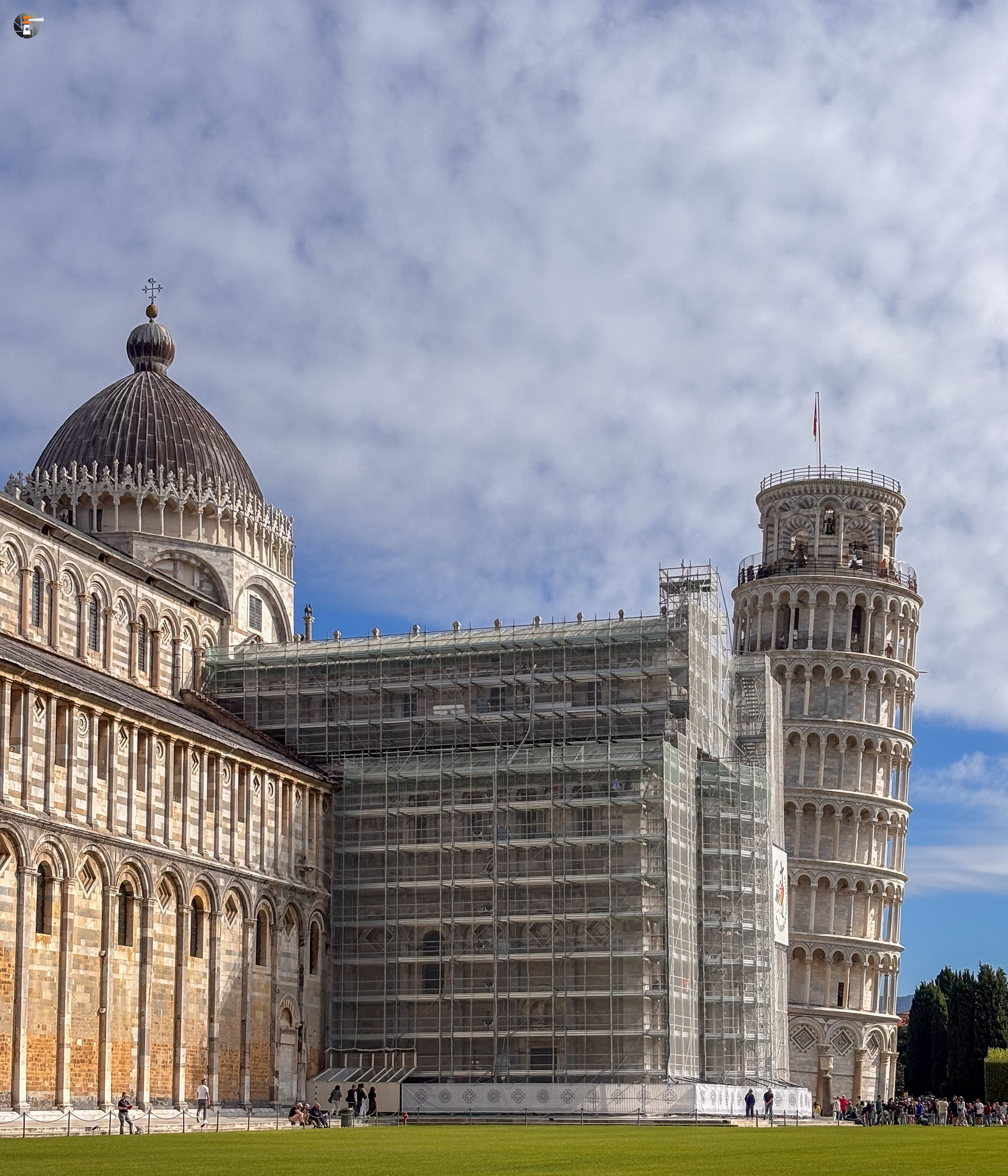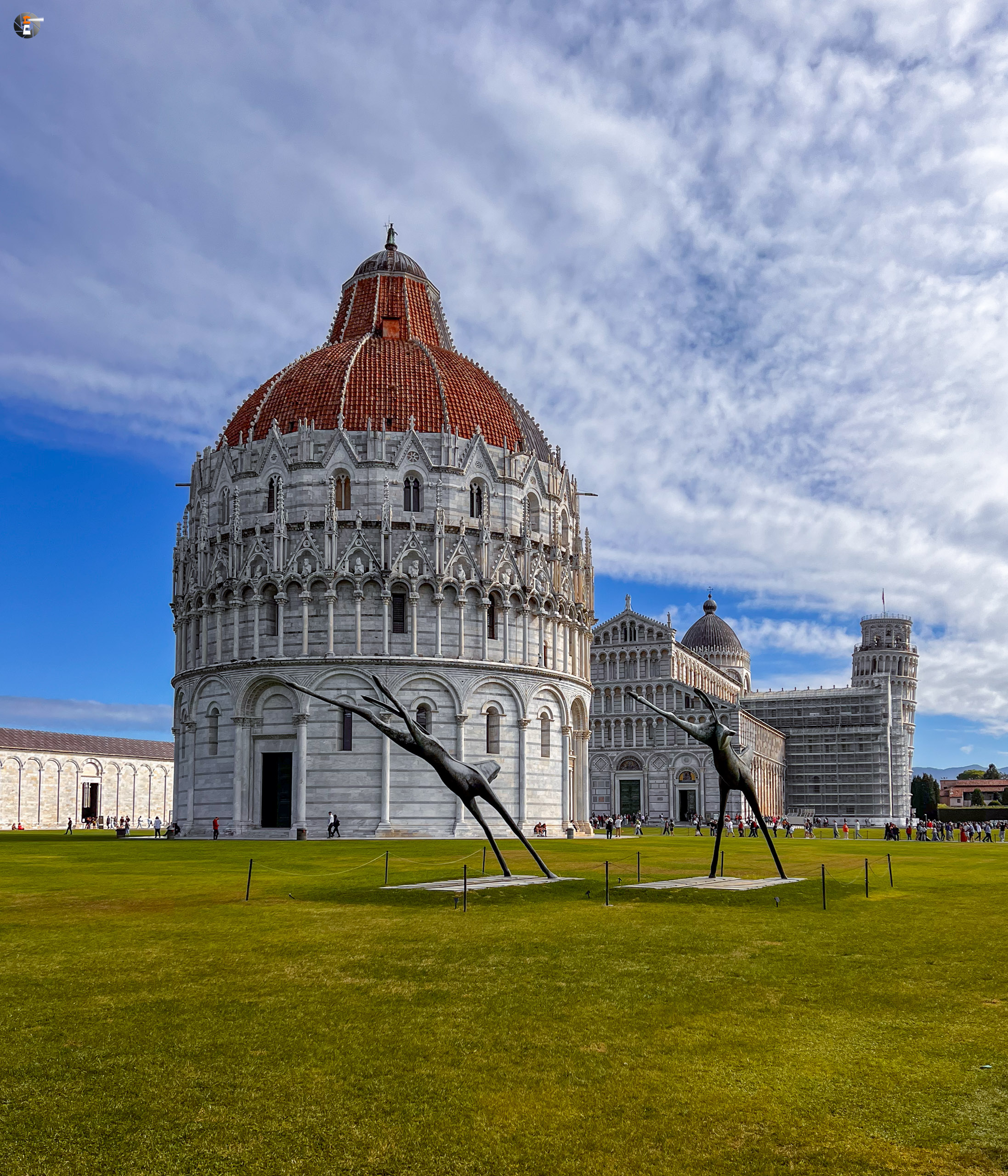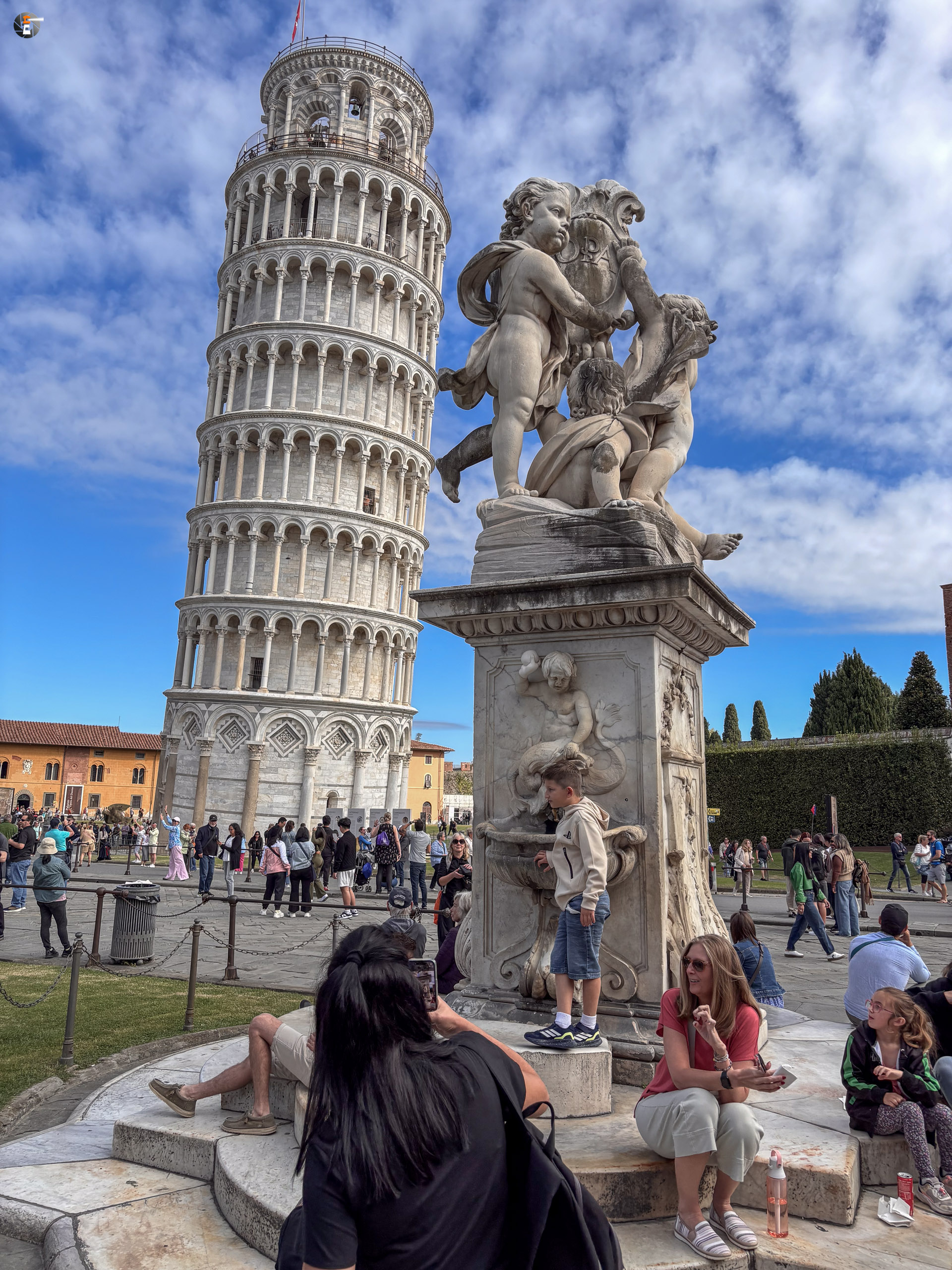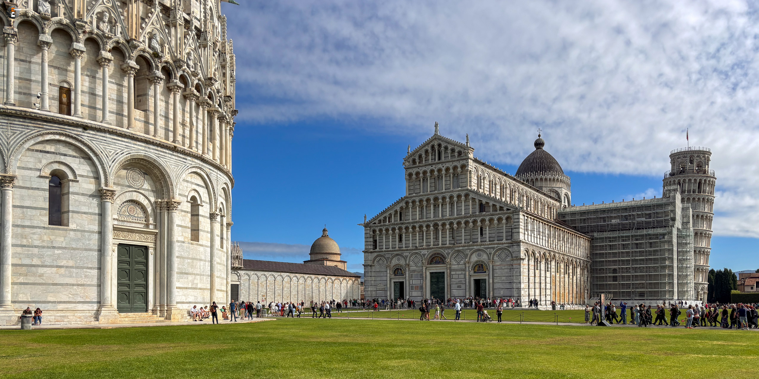 Zurück am Parkplatz wurden die Räder wieder aufgehuckt und ins Navi „Pisa“ eingegeben. Das besuchen wir aber heute nur, weil wir grad hier sind. Das schönste daran ist eigentlich die Anfahrt von Norden über die Luccheser Berge. Von dort haben wir einen schönen Blick auf das Pisaner Ensemble, auf den weißen Marmor von Turm, Dom und Baptisterium. In der Morgensonne leuchten die Bauwerke sehr eindrücklich über dem grünen Rasen. Das ist zu weit weg für ein Foto ohne Teleobjektiv, das ist nur für die Augen. Das steht in keinem Reiseführer, das kann man nur wissen. Wir entdeckten das vor mehr als zwanzig Jahren.