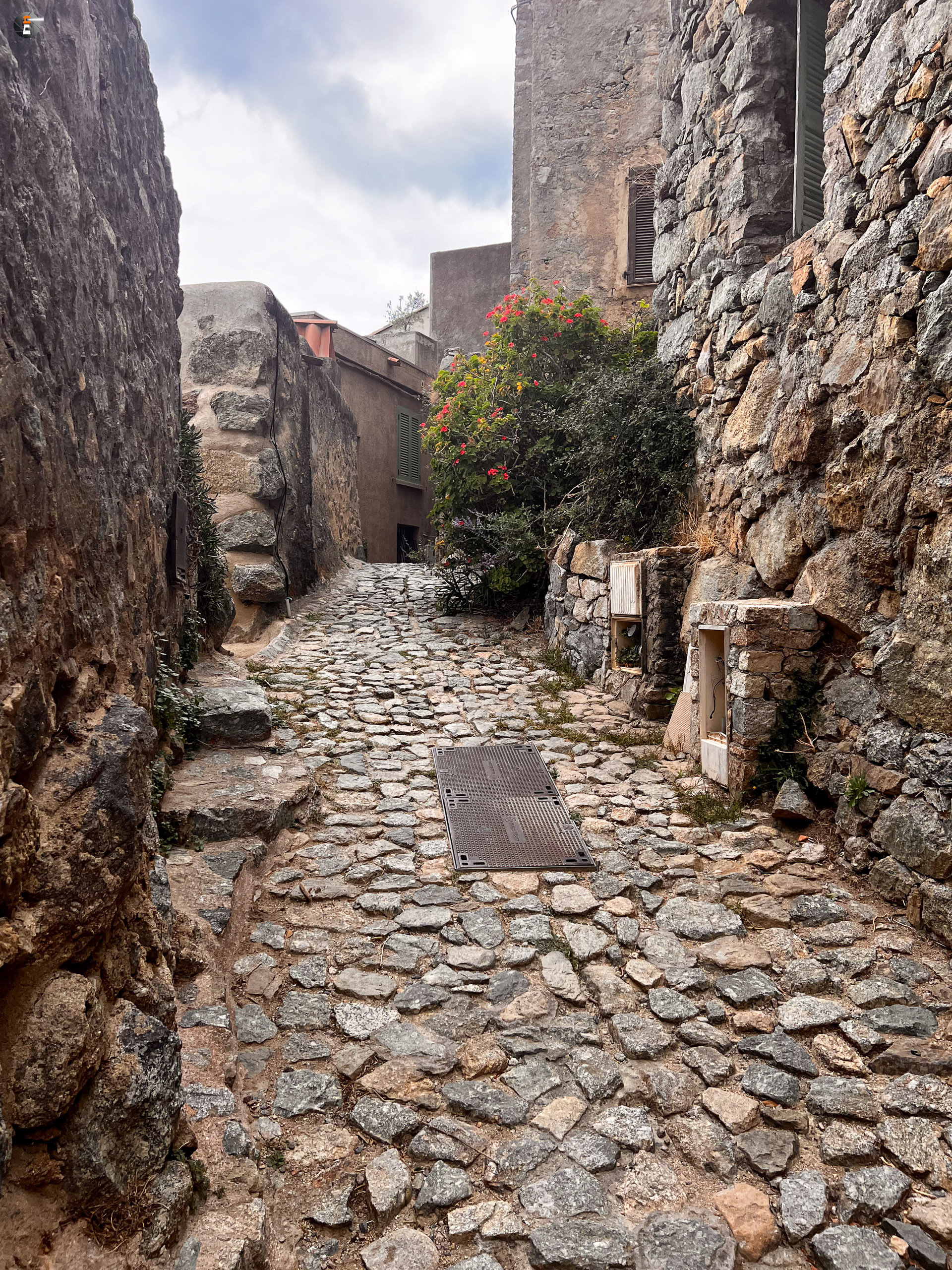 Mit Sant’Antonino erreichten wir am Ende des wohl schönste Dorf, wo wir uns mit einem Mahl belohnten, nicht ahnend, dass hier nur Bargeld genommen wird, was wir natürlich nicht haben. Da der nächste Geldautomat ziemlich weit weg unten am Meer ist, gehen wir zum Bezahlen in eines der Geschäfte nebenan und bezahlen dort. Der von uns gezahlte Betrag wird auf eine Liste geschrieben und sicherlich irgendwann quer verrechnet. Dass es kartenlose Restaurants noch gibt, liegt inzwischen außerhalb unserer Vorstellungskraft. Wir bestreiten Urlaube in aller Welt normalerweise völlig ohne Bargeld. Auch in Frankreich haben wir das schon so gemacht, aber hier auf Korsika? Fehlanzeige. Zum Abendessen wird uns das wieder passieren, diesmal merkt es Eva aber noch, bevor wir das Restaurant betreten. Ich frage nach, wo es den nächsten Geldautomat gibt. Es ist nicht weit, nur ein paar hundert Meter weiter im Ort. Ich kann mich auch noch erinnern, wie man das macht mit dem Geld abheben, obwohl ich das schon lang nicht mehr brauche 😉 Glücklicherweise sind es Euro, die auch in Italien und zu Hause funktionieren – was das für eine tolle Idee war und ist. Zu Hause würden wir ein Restaurant ohne Kartenzahlung ignorieren, bestimmt tue ich dem einen oder anderen Betrieb auch Unrecht, für mich hat das aber immer den Beigeschmack von Schwarzkassen. Hier aber ist es ein französisches bzw. korsisches Problem. Das Restaurant scheint weder eine Kasse noch einen Computer zu haben, alles passiert auf Notizzetteln. Am Ende bekommen wir die Rechnung handgeschrieben und kopfgerechnet – L’addition noch im wahren Sinn des Wortes. Es versteht sich von selbst, dass hier niemand etwas anderes als französisch oder korsisch spricht. Letztes beherrschen wir nicht einmal rudimentär, obwohl es wie italienisch aussieht, wo alle O’s durch U’s ausgetauscht wurden. Französisch reicht so für die Speisekarte und die Bestellung. In Bastia kapitulierte Eva nach einer Weile vor dem Kellner, der erst dann merkte, dass wir kein Französisch sprachen. Ich finde, das war ein ziemliches Lob, welches mir so gar nicht gebührt.