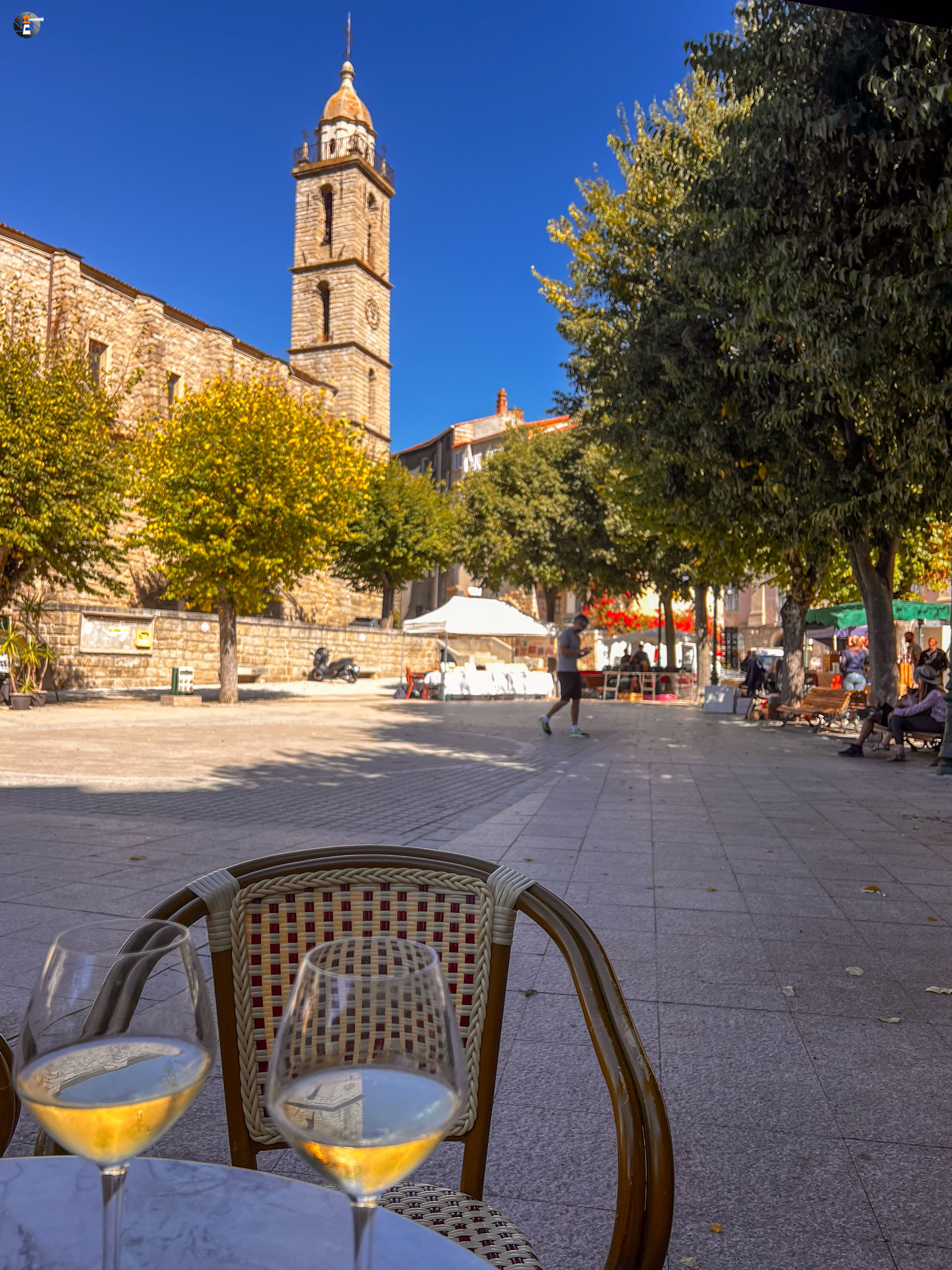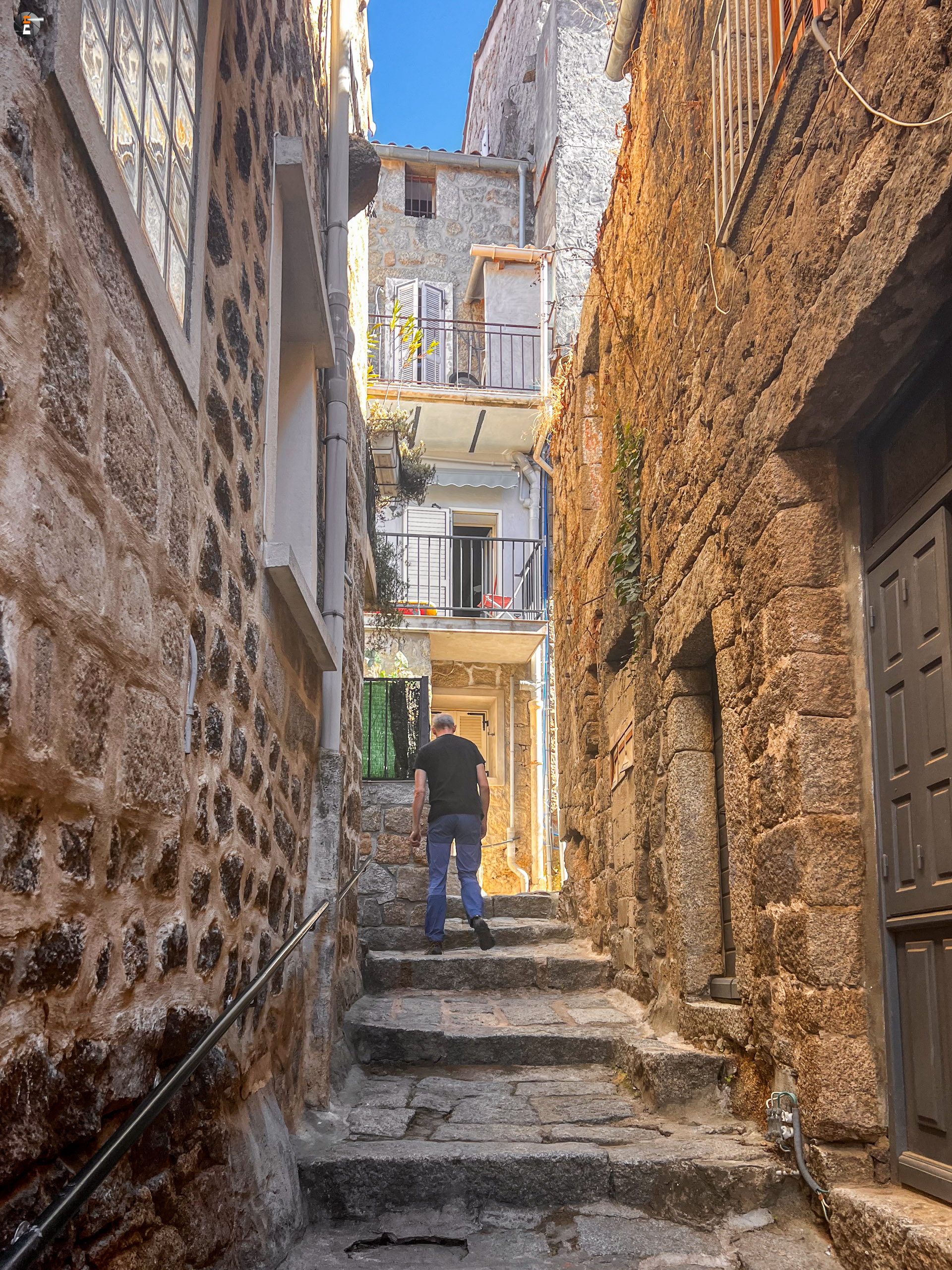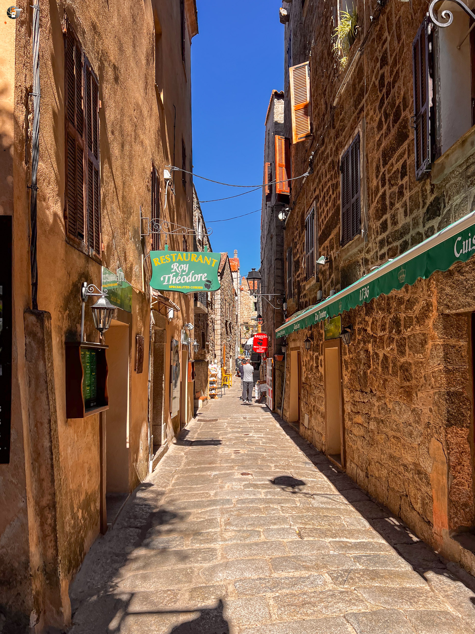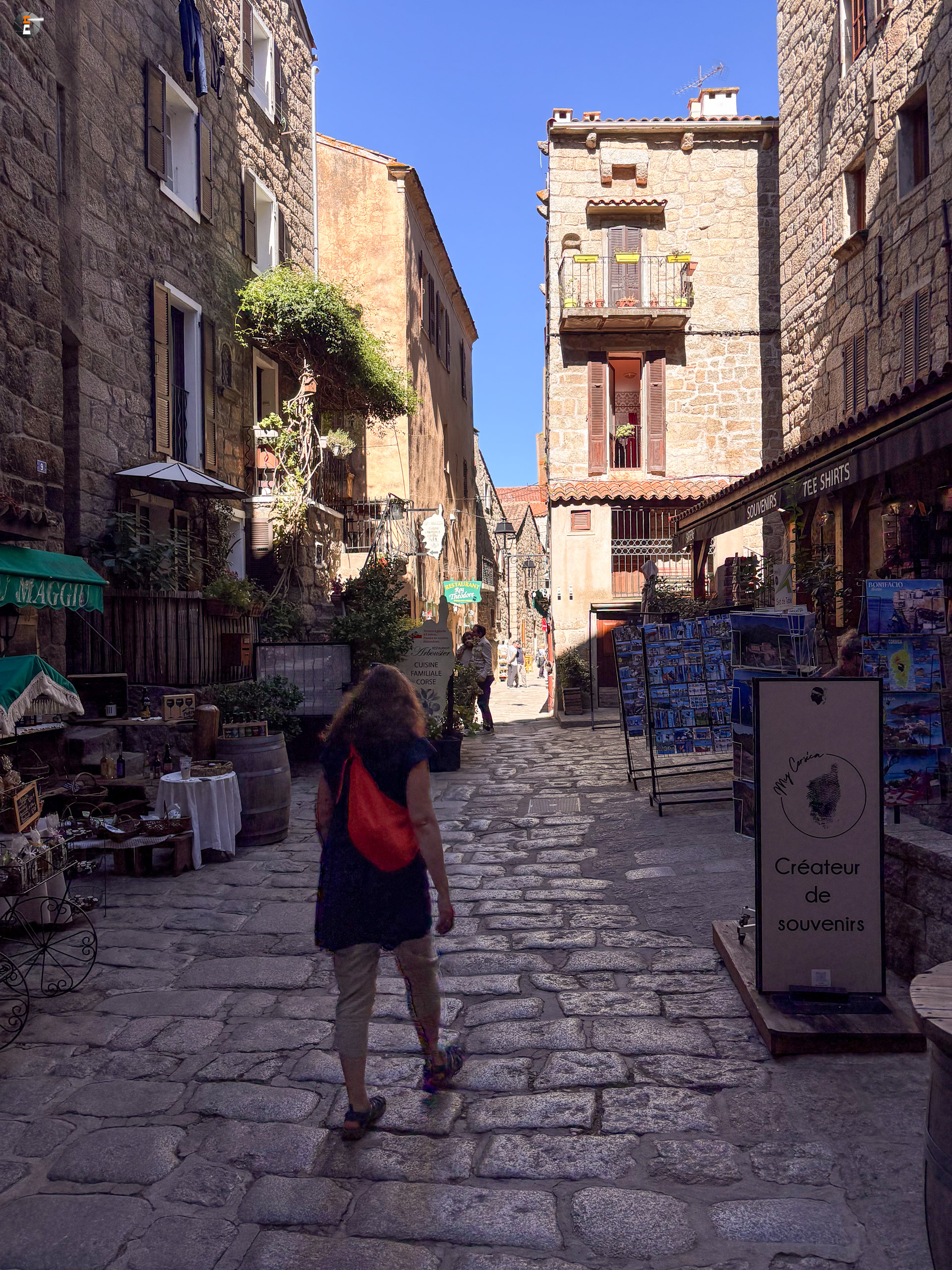 Nachdem wir am Leuchtturm lang genug Richtung Sardinien geschaut hatten, machten wir uns so langsam auf die Weiterreise entlang der Südwestküste. Unser nächstes Ziel sollte Sartène sein. In diesem kleinen Bergdorf sollte es heute Vormittag einen Markt geben. Viel versprachen wir uns nicht, da wir erst etwa eine halbe Stunde vor Marktschluss eintreffen würden. Bloß gut, wir wären sonst enttäuscht gewesen. Viel Markt war nicht, wir haben Nachsaison. Der Ort ist trotzdem hübsch. Wir verkosten einen der örtlichen Weine, bevor wir ans Meer fahren, um dort etwas zu essen zu finden. Da wir nun schon einige Tage in Frankreich sind, würde es langsam an der Zeit sein, eine Crêperie aufzusuchen. Aber dieser Versuch scheitert, wir finden aber unweit entfernt ein kleines Lokal mit korsischen Spezialitäten. Es ist das einzige Restaurant, dass keine Werbung macht und dessen Tische mehr oder weniger alle besetzt sind. Ein weiteres untrügliches Zeichen ist die nicht laminierte Speisekarte! Wir sind vernünftig und belassen es jeder bei nur einem kleinen Gericht. Wir hätten die Speisekarte auch rauf und runter probieren können 😉