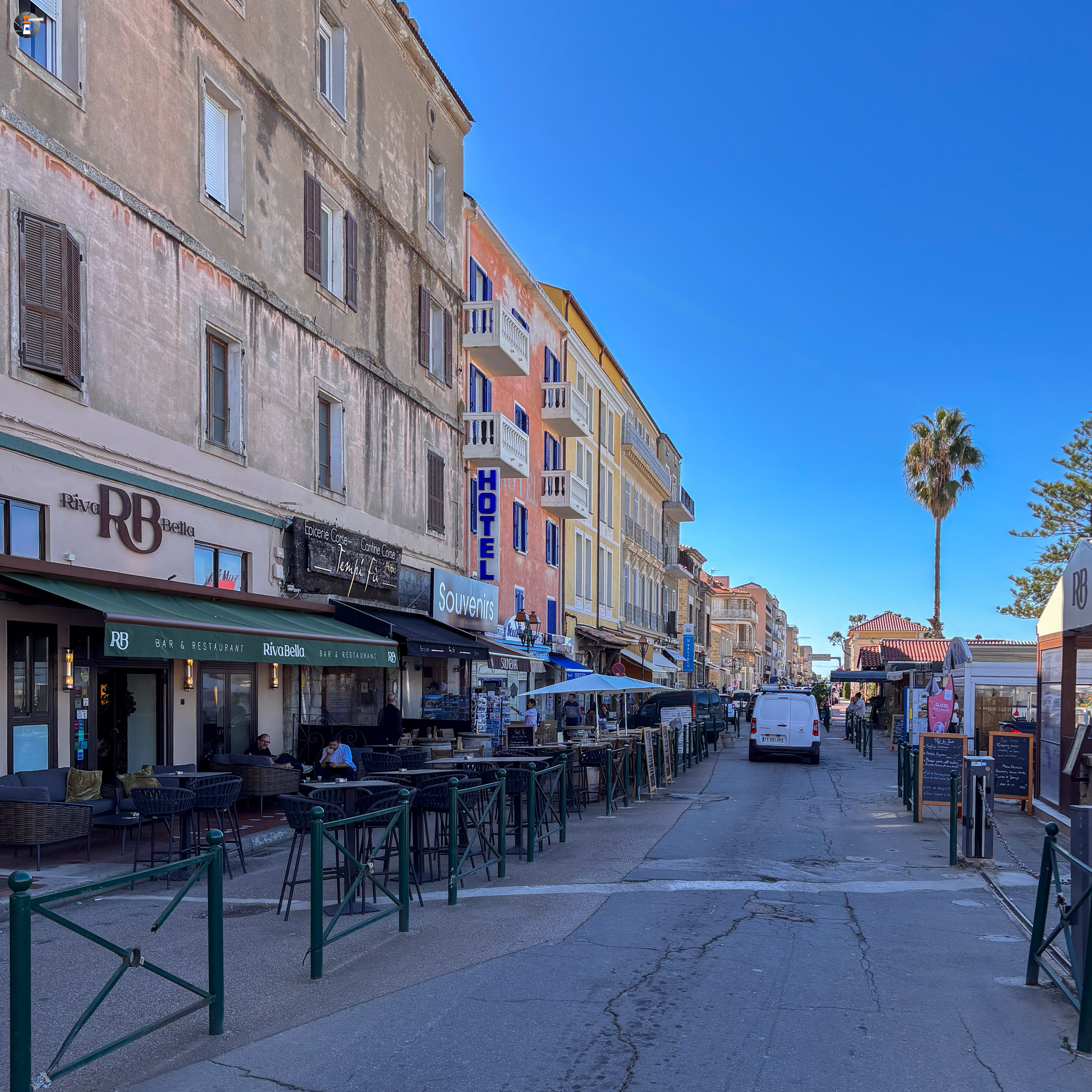 Weiter ging es auf Schnürsenkelstraßen nach Ajaccio in die Hautpstadt Korsikas und … jede:r weiß das, in den Geburtsort Bonapartes. Weil gerade ein Schnelllader im Navi des Autos auftauchte, nutzten wir diesen, um ein paar Kilowattstunden in die Batterie zu pumpen. So eigentlich brauchen wir das nicht, da wir an unserer Unterkunft eine Lademöglichkeit haben werden, aber man weiß ja nie. Als unsere Batterie voll genug war, dass wir notfalls auch über die ganze Insel kämen, fuhren wir weiter über die breite Ufermagistrale in die Stadt, stellten schnell fest, dass es uns hier viel zu voll und alles viel zu groß ist und kehrten um. Unser Gewissen beruhigten wir damit, sowieso nur wegen des Ladens hier gewesen zu sein.