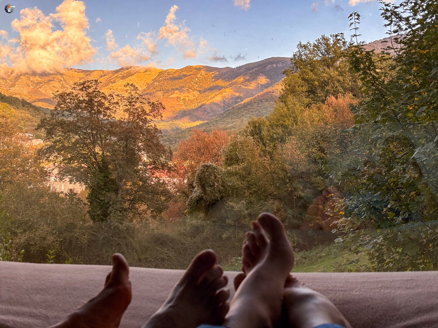 Etwa 35 Kilometer weiter in den Bergen erreichten wir unser Ziel für den heutigen Tag in Bastelica. Ganz ruhig, hier gibt es nur Wanderer. Das Bett steht direkt am Panoramafenster, damit wir die Berge in ihrer ganzen Schönheit sehen können. Wir betrachten über unsere Füße hinweg das Farbenspiel während des Sonnenuntergangs, der hier in den Bergen schneller kommt und machen uns auf ins Dorf um etwas zu essen zu finden. Das wird auch wirklich Zeit, schon seit einigen Stunden haben unsere Mägen kein korsisches Essen mehr bekommen…