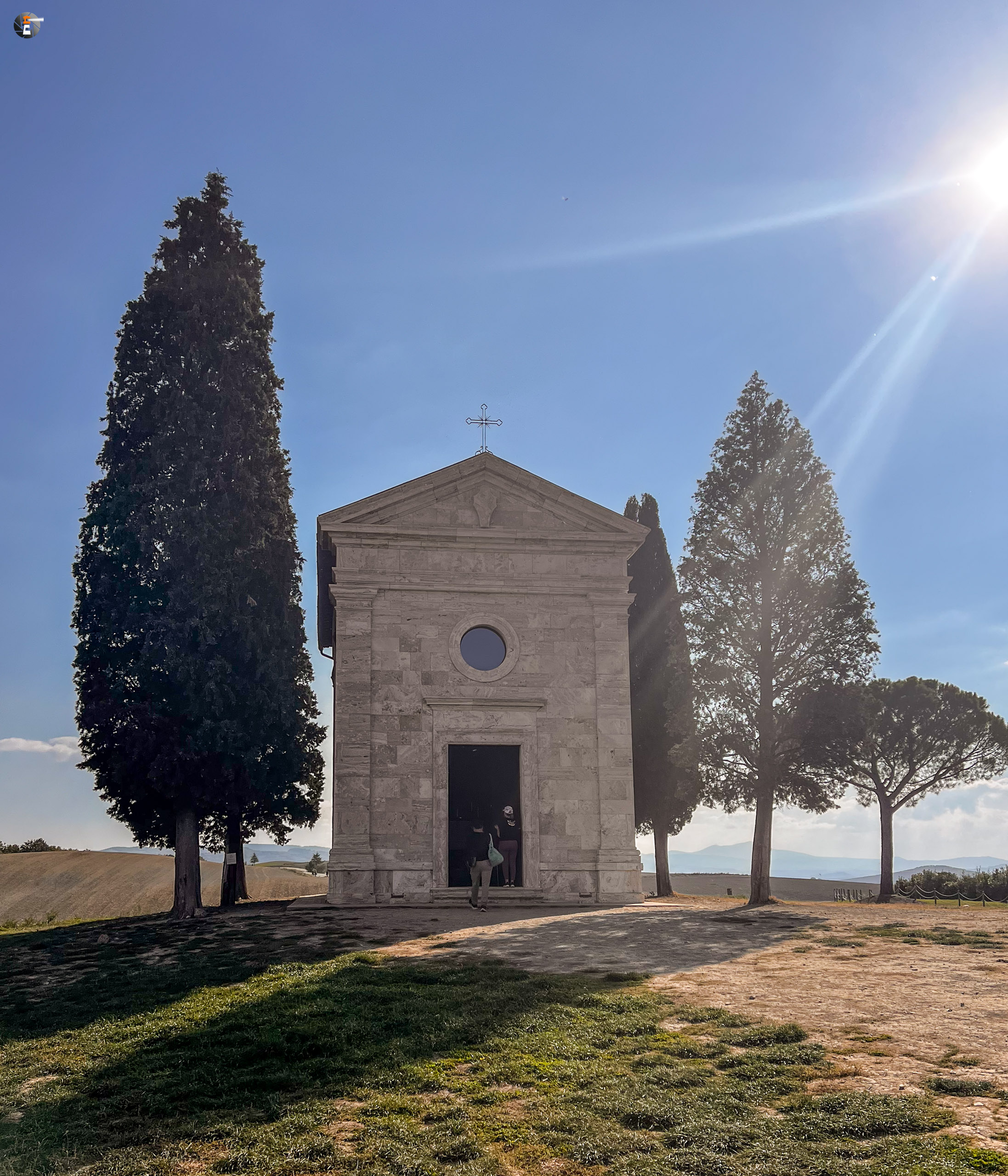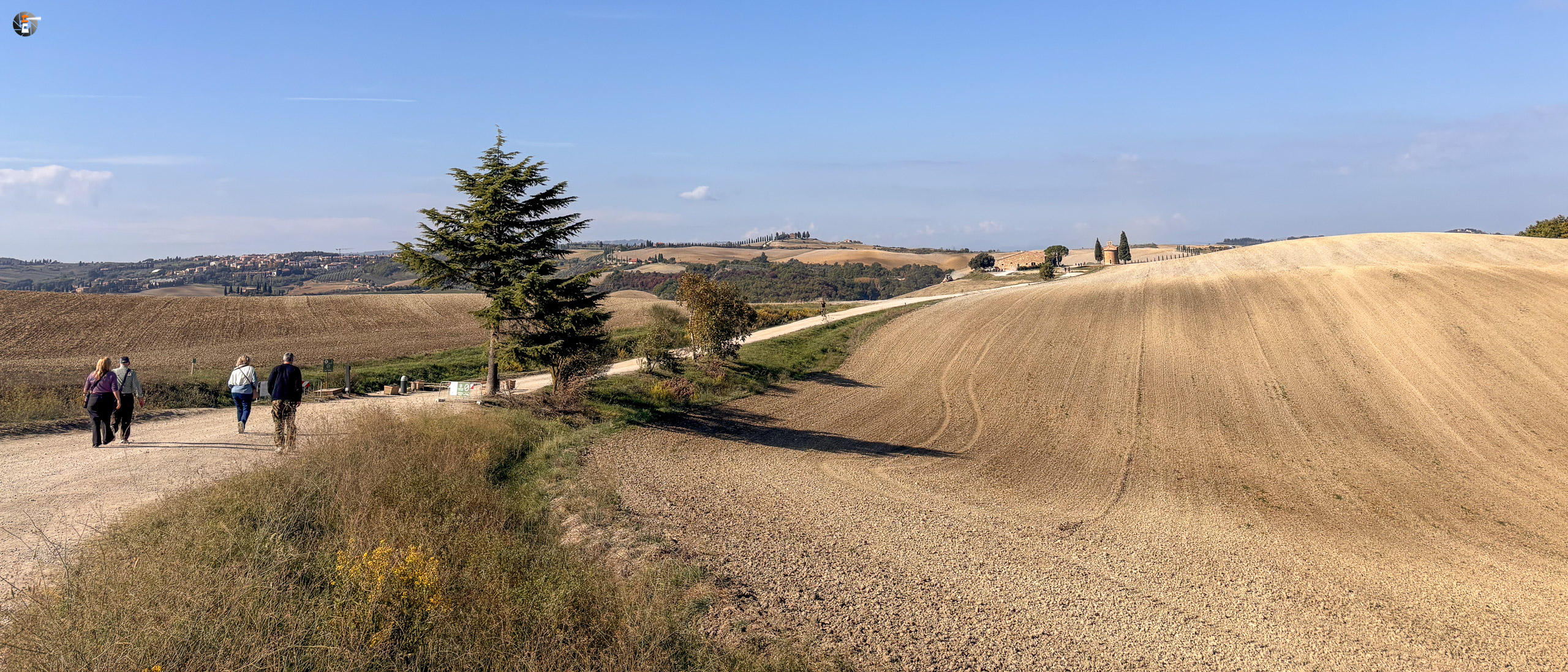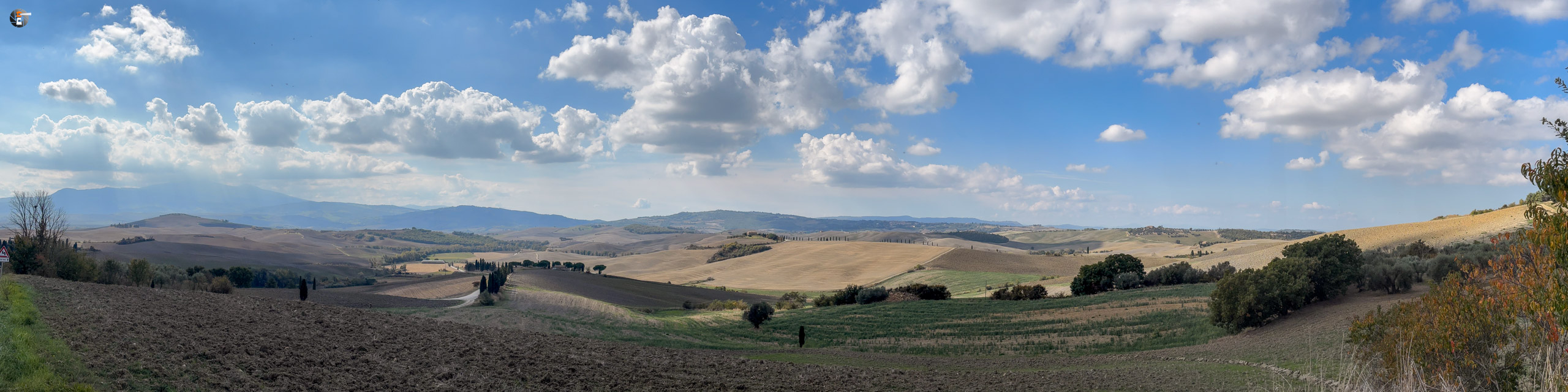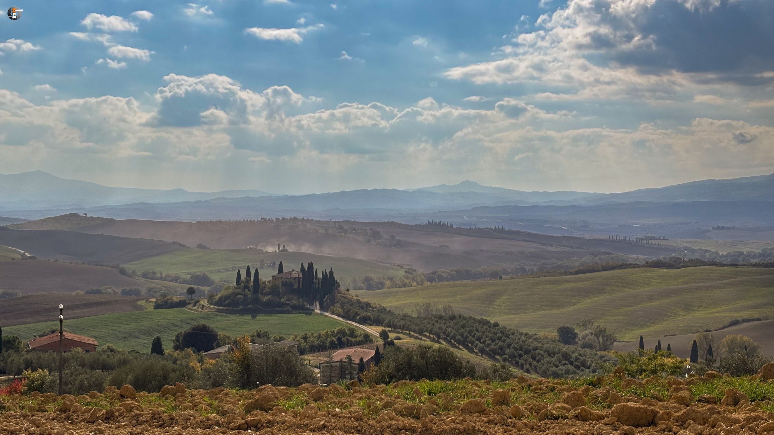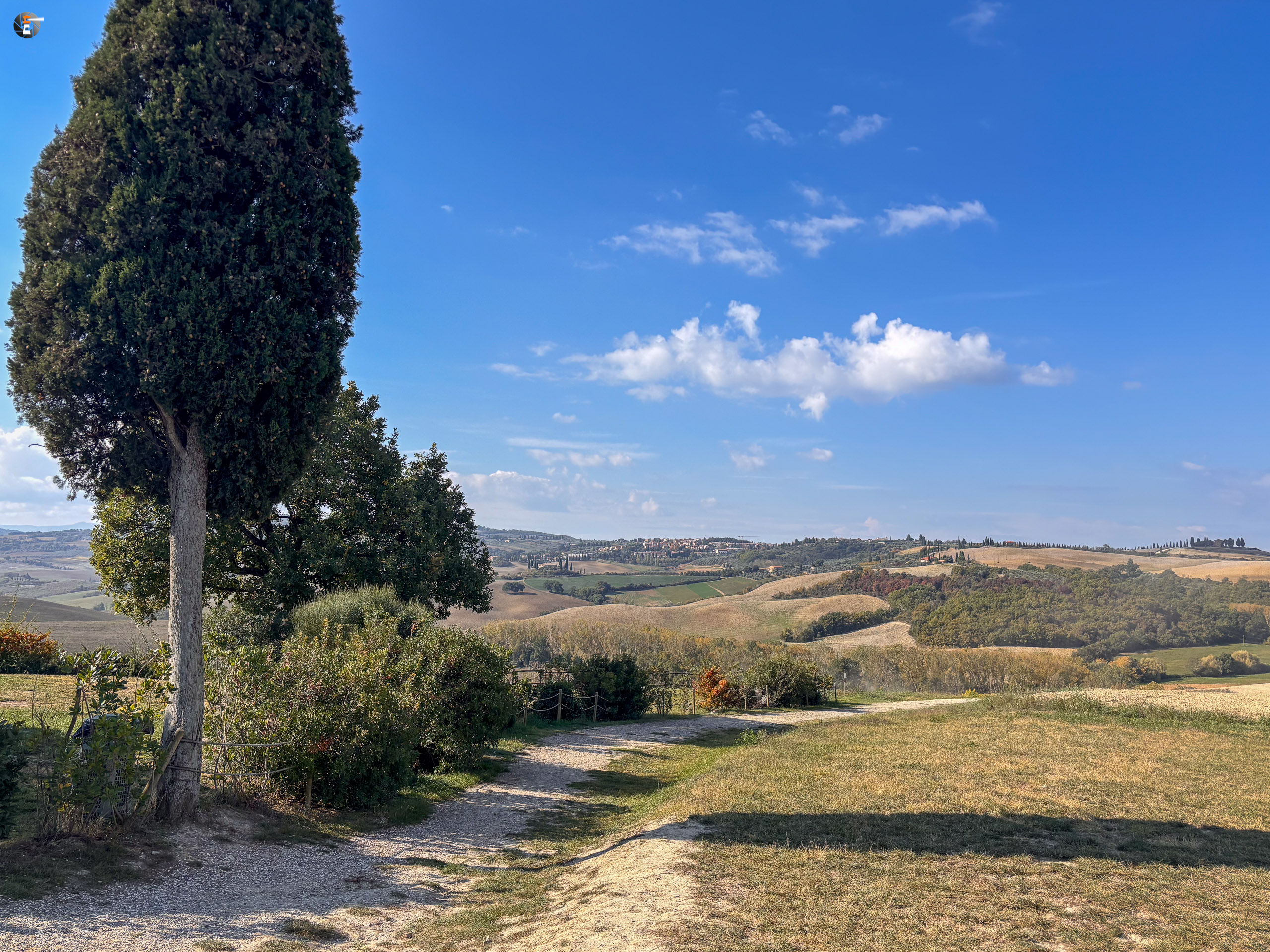 Für den heutigen Tag hatte Jens sich eine Radtour durchs Val d‘Orcia gewünscht. Also haben wir nach dem Frühstück unsere Siebensachen zusammengepackt und sind mit dem Auto nach San Quirico d’Orcia aufgebrochen. Von dort sollte uns eine Runde über die Kapelle der Madonna di Vitaleta nach Pienza, weiter nach Bagno Vignoni und wieder zurück zum Auto führen. Am Morgen lag die Toskana noch unter dichtem Nebel und so packte ich mich den 11 Grad entsprechend warm ein. Die Planung überließen wir Google und es war wie fast immer, darauf sollte man sich nicht so unbedingt verlassen 🙄 wenn man mit dem Fahrrad unterwegs ist.