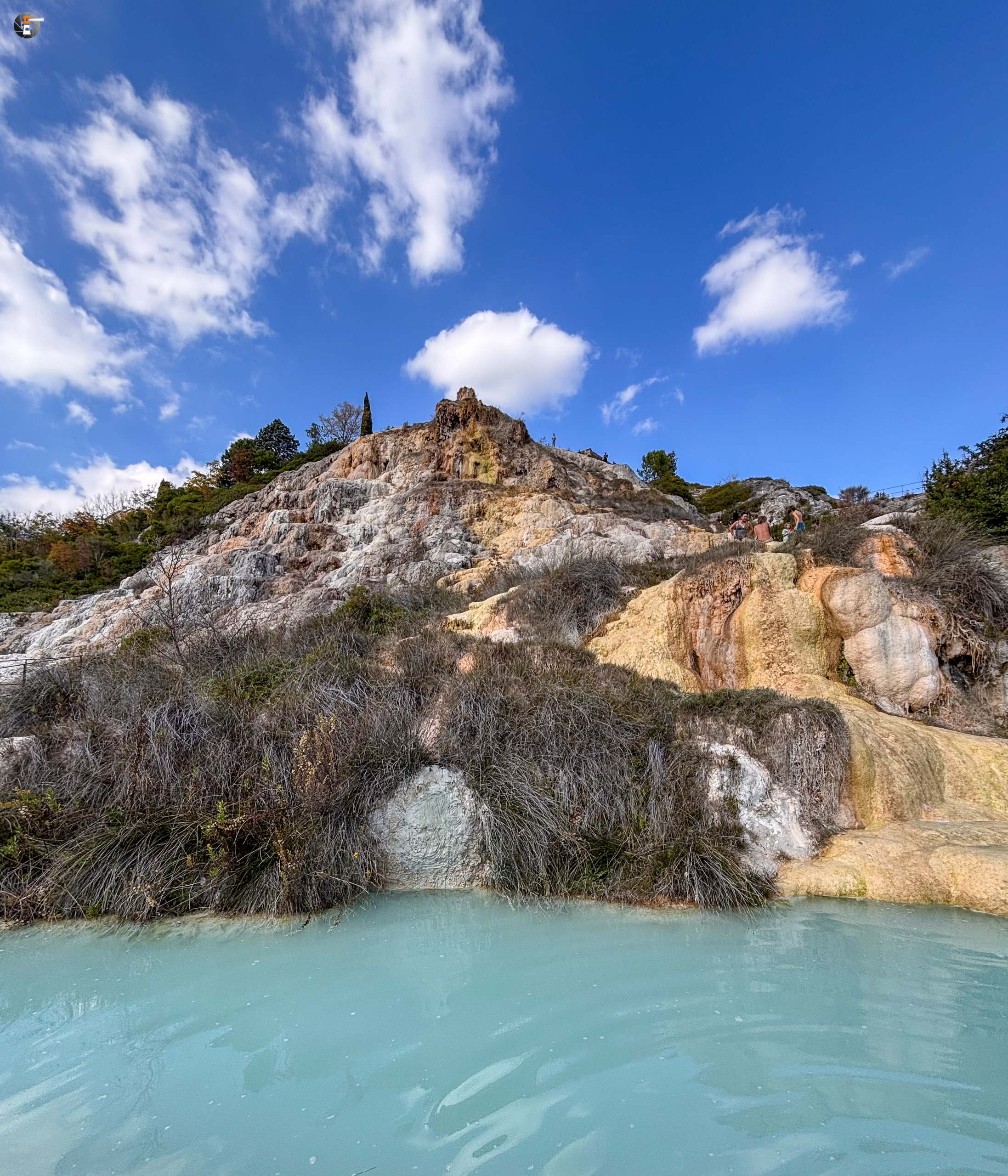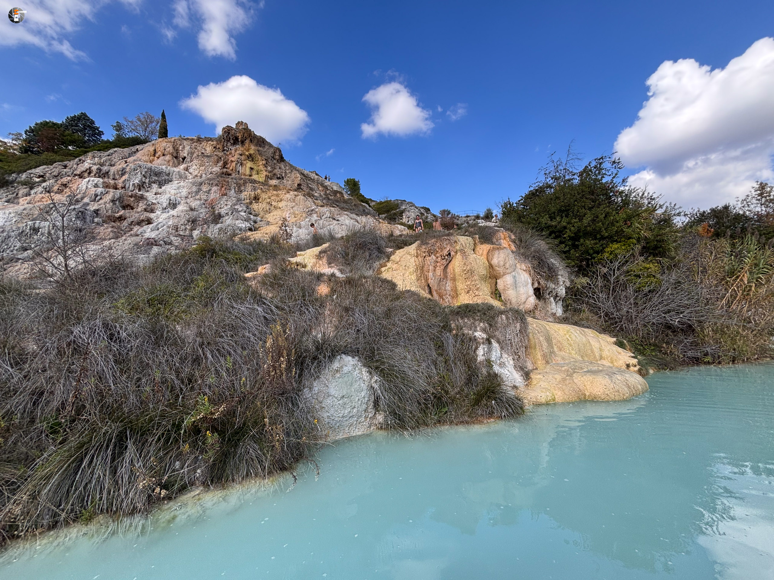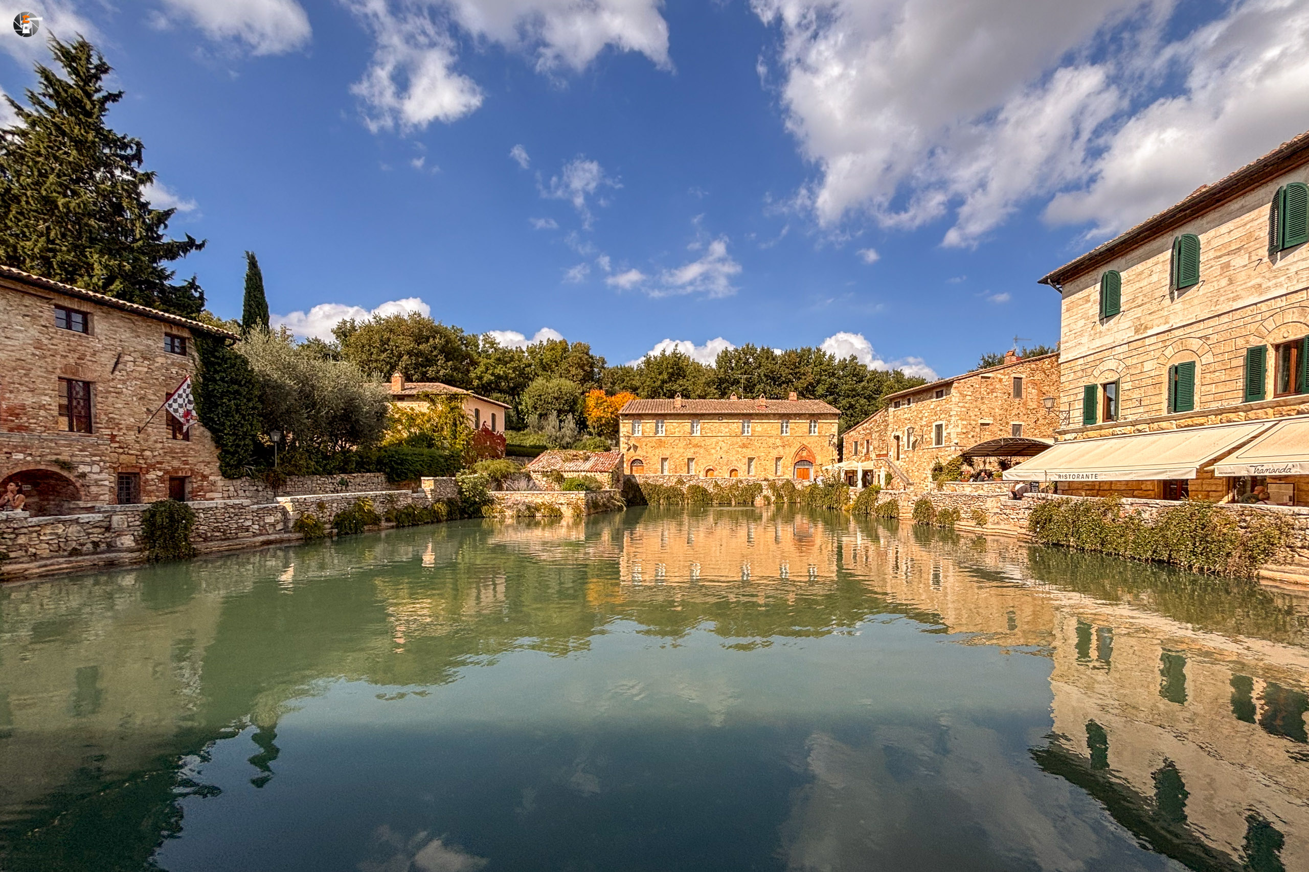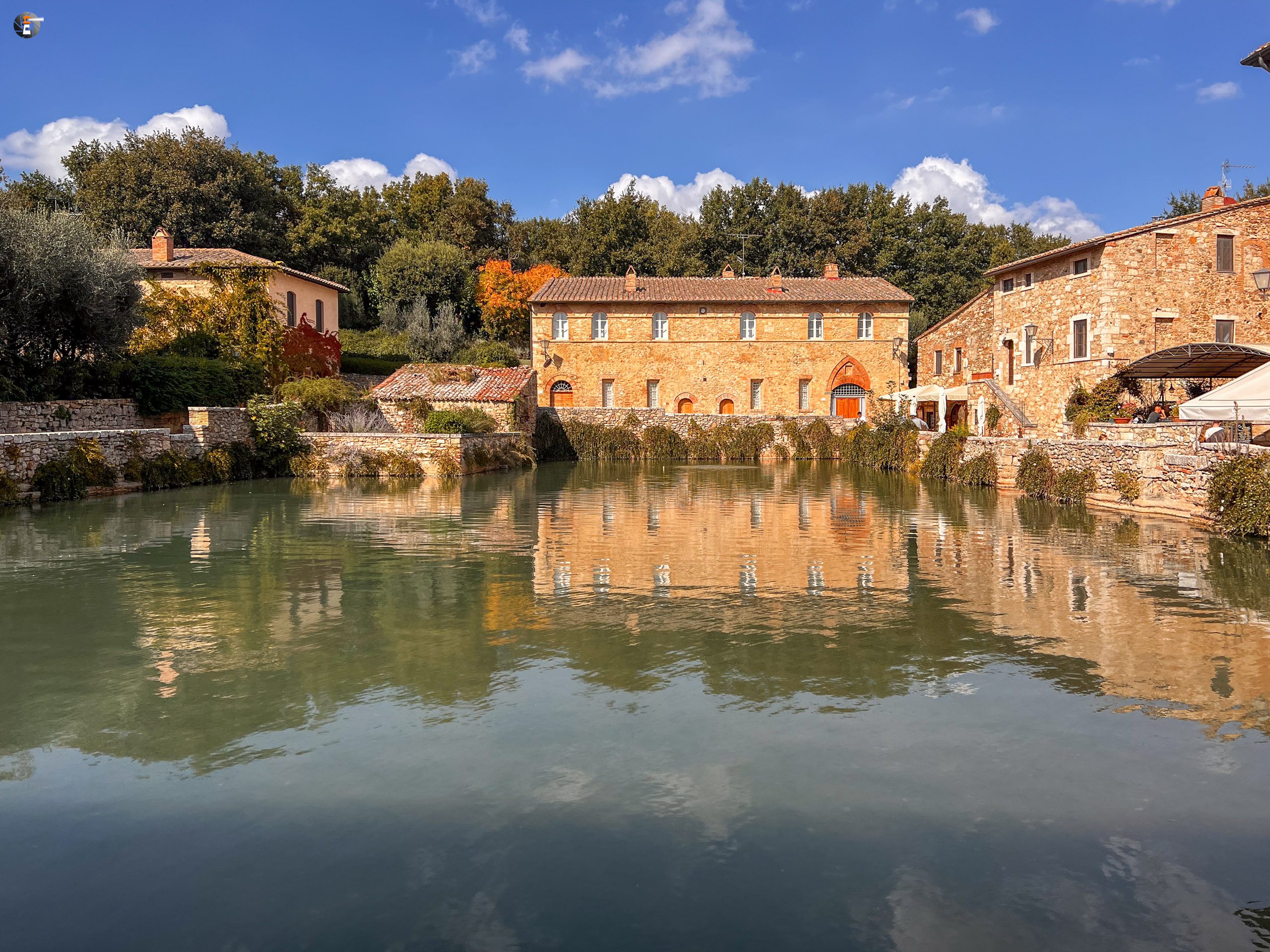 Wer mehr über Pienza wissen will, muss mal ein bisschen über Papst Pius II. lesen, dem die Stadt ihren Namen verdankt. Wir selbst wollten uns ja noch auf den Weg nach Bagno Vignoni machen und mittlerweile saß uns die Zeit ein bisschen im Nacken. 15:00 Uhr wartete nämlich auf dem Weingut eine Weinverkostung auf uns. Zugegebenermaßen eine blöde Zeit, wenn man in Ruhe eine Radtour machen will. In Bagno Vignoni selbst reichte es für uns zu einem Kaffee und einem Eis und wir schafften sogar noch eine Stippvisite an den Sinterbecken (wobei dort meine Freude am Radfahren mal wieder einen Schotterwegdämpfer erhielt).
