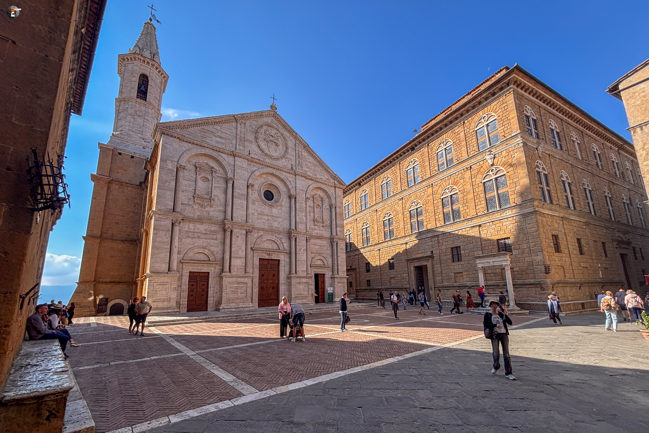 Auf dem Weg nach Pienza ließen wir allzu abseitig erscheinende Routen nun außen vor und erlangten gegen Mittag den Ort. Nach einem kurzen Bummel vorbei an der Kirche und zahlreichen Restaurants fanden wir unsere Unterkunft von vor 6 Jahren wieder, freuten uns an den Erinnerungen und ergatterten zu guter Letzt einen Platz in einem Café direkt an der Kirche.
