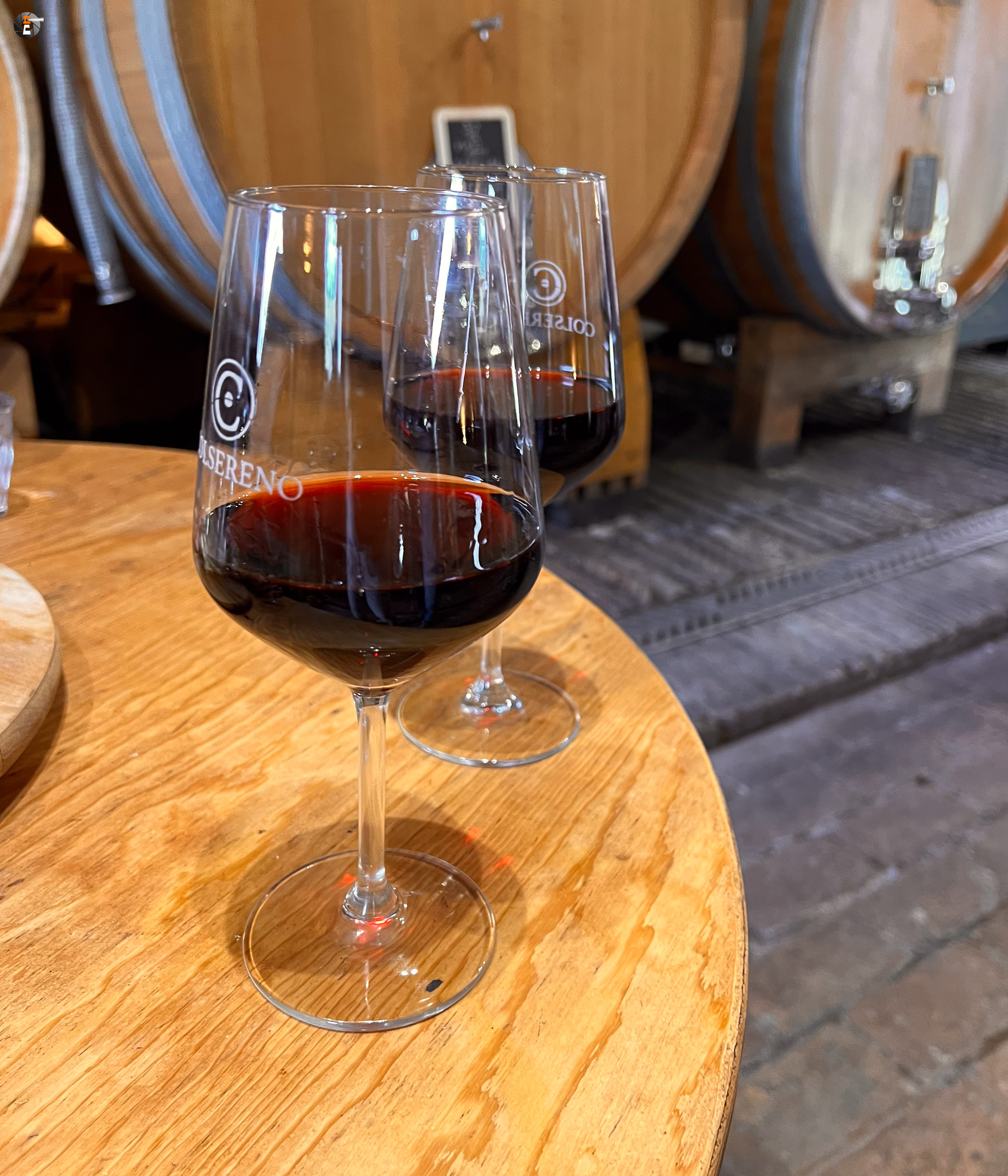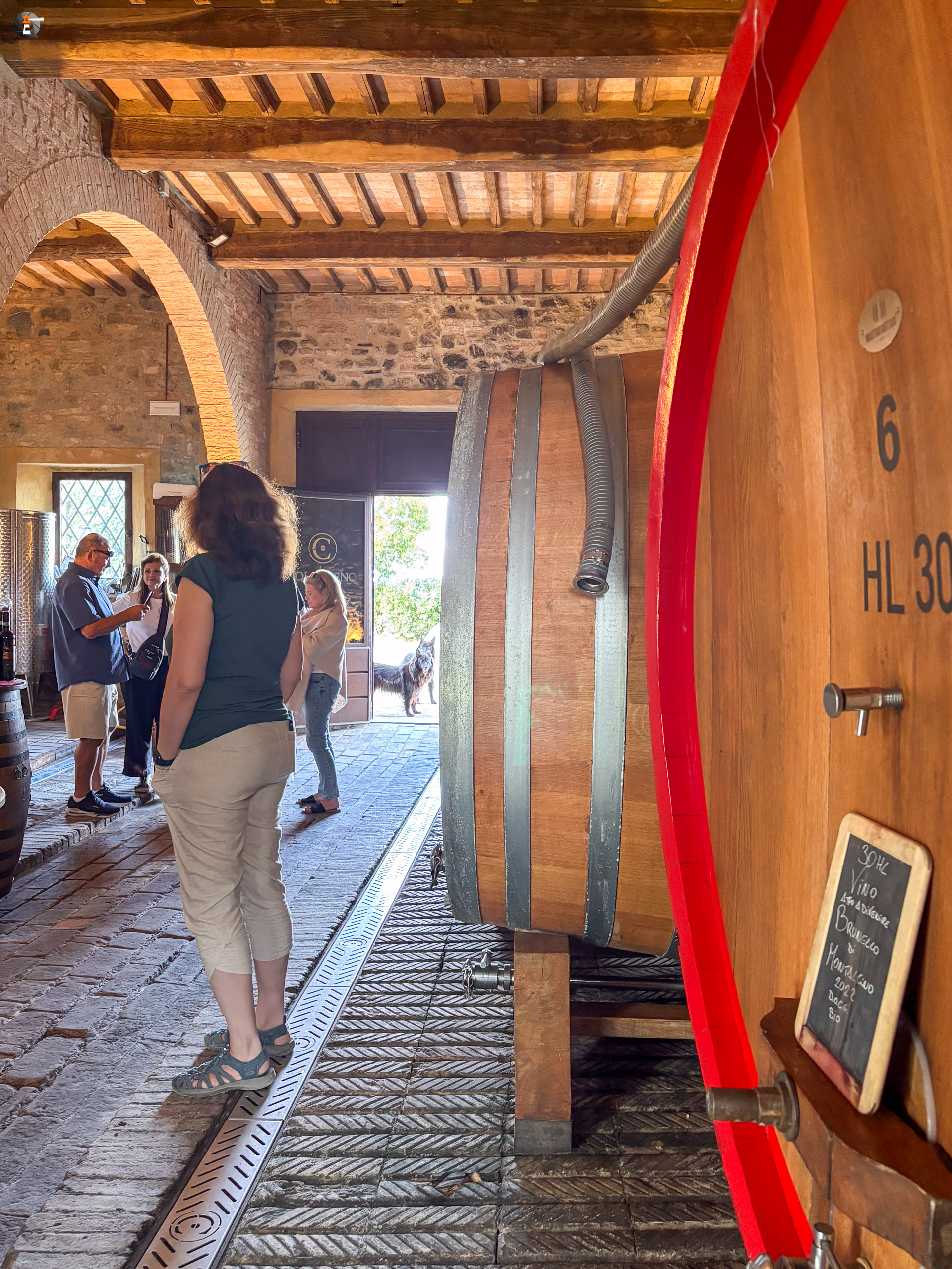 Nach reichlich 4 Stunden waren wir dann wieder am Auto und pünktlich 14:45 Uhr zurück am Weingut. Dort warfen wir uns noch kurz in andere Klamotten und schon ging die Weinverkostung mit einem kurzen Weg zum Weinkeller los. Dieser ist, wie fast alles in der Toskana oben auf einem Berg oder Hügel und dorthin liefen wir nun.