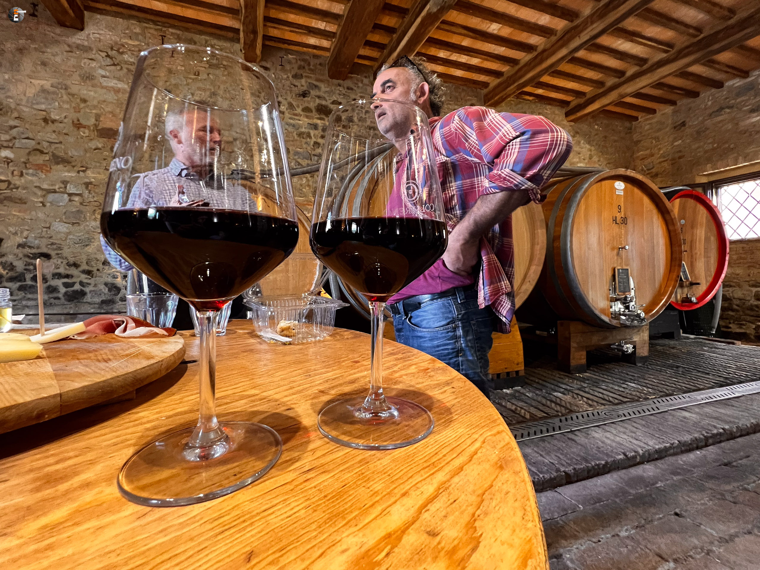Empfangen wurden wir vom Besitzer Gianni, der mit seinem Bruder seit 2015 hier Rosso und Brunello di Montalcino unters Volk bringt. Angefangen hat das Ganze Mitte der 1990er mit dem Anpflanzen von Wein. Da braucht man schon einen langen Atem.