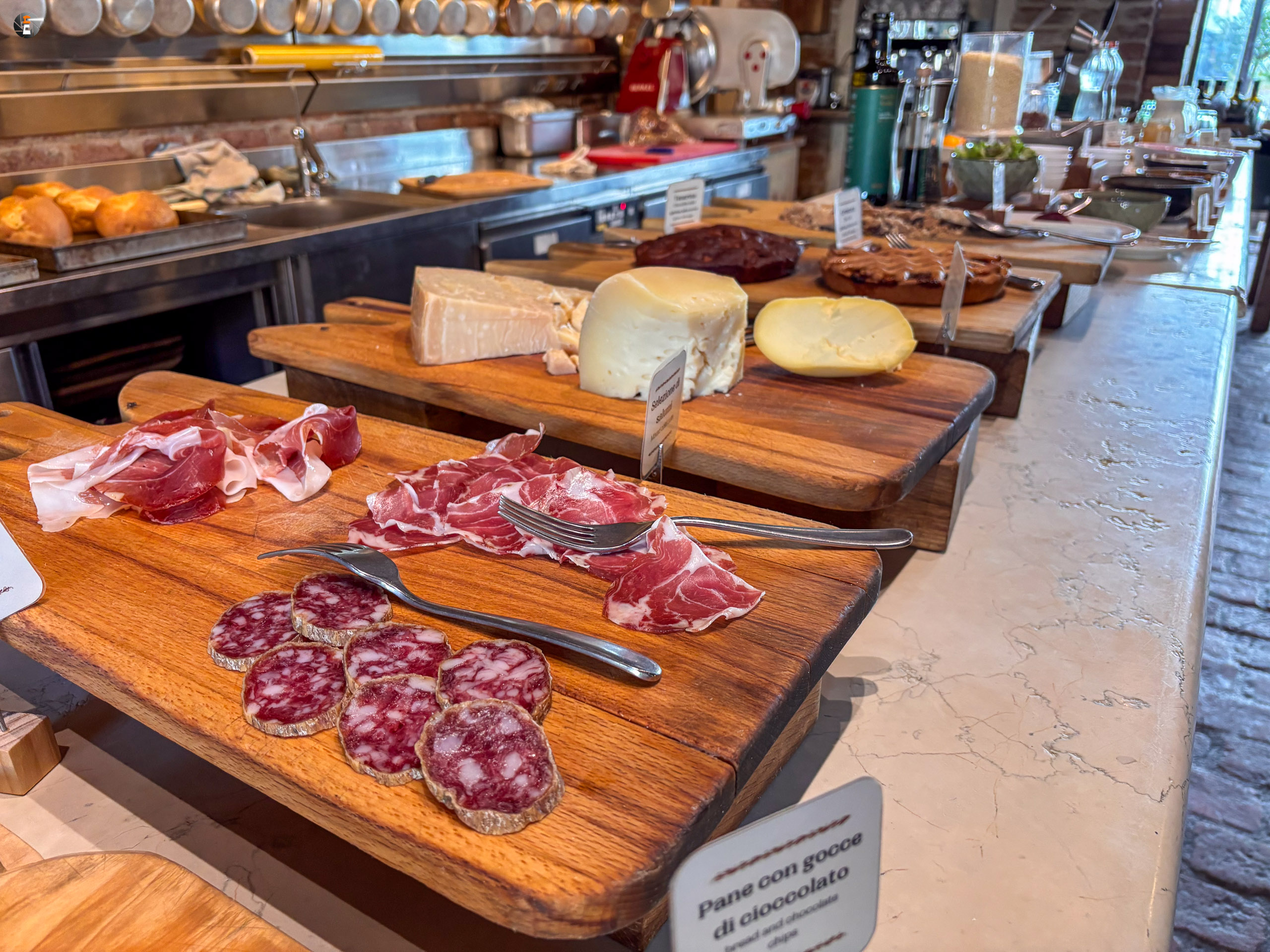 Wieder aus dem Berg heraus, plagte uns ein Hüngerchen. Linderung erwarteten wir im Nachbardorf, gelegen am nächsten Berghang. In Colonnata wurde das zur Perfektion kultiviert, was für nahezu jeden Marmorbrecher hier früher und vielleicht auch noch heute die Tagesmahlzeit war bzw. ist: In Marmortrögen gereifter Rückenspeck von Schweinen. Die Delikatesse heißt Lardo. Fleischgenießer:innen, die mit purem Speck ein Problem haben, sollten die Augen schließen und trotzdem probieren. Es schmeckt nach Schinken. Hier sehen bzw. schmecken wir, wie gut Zeit fast allem tut.