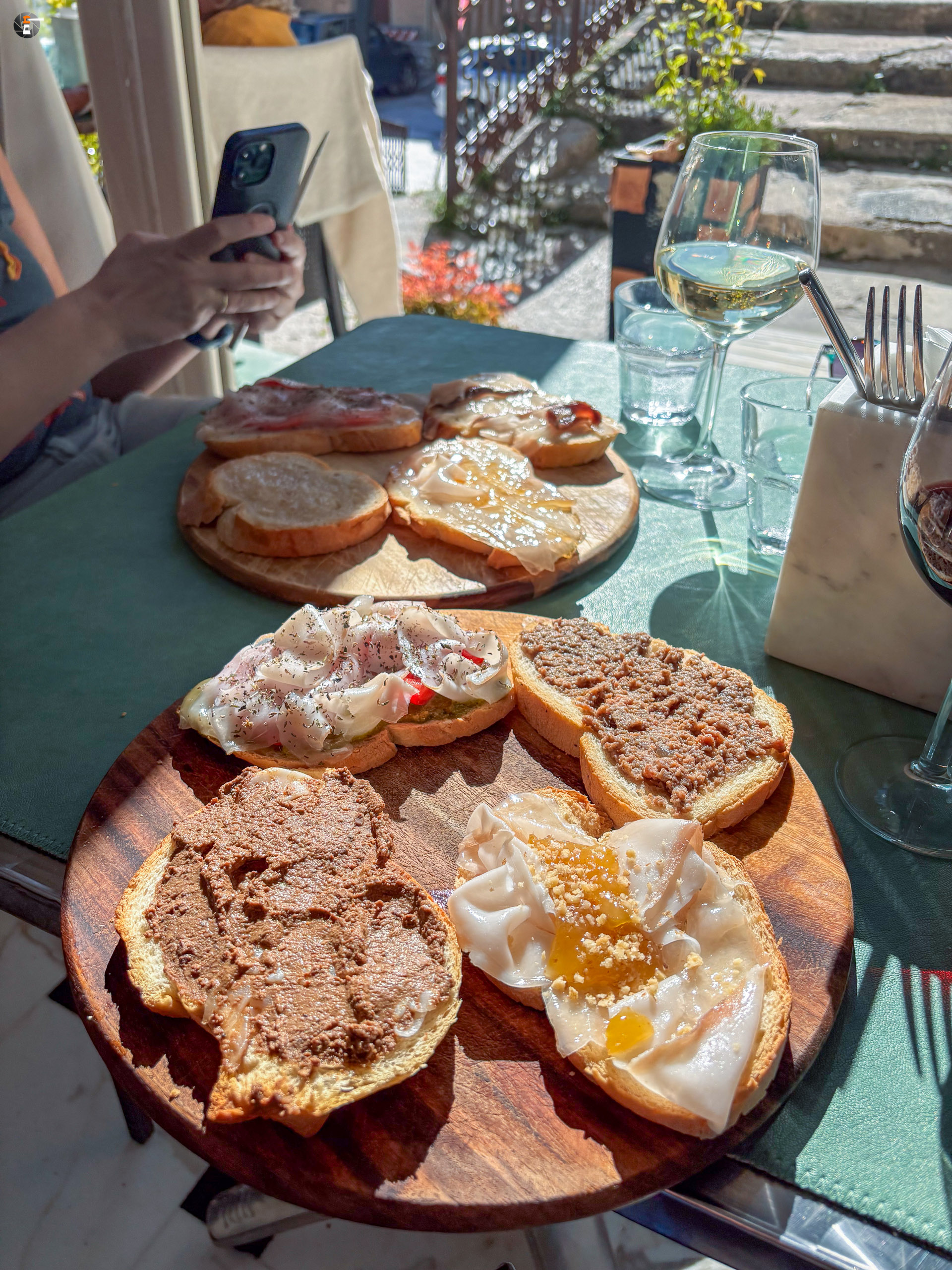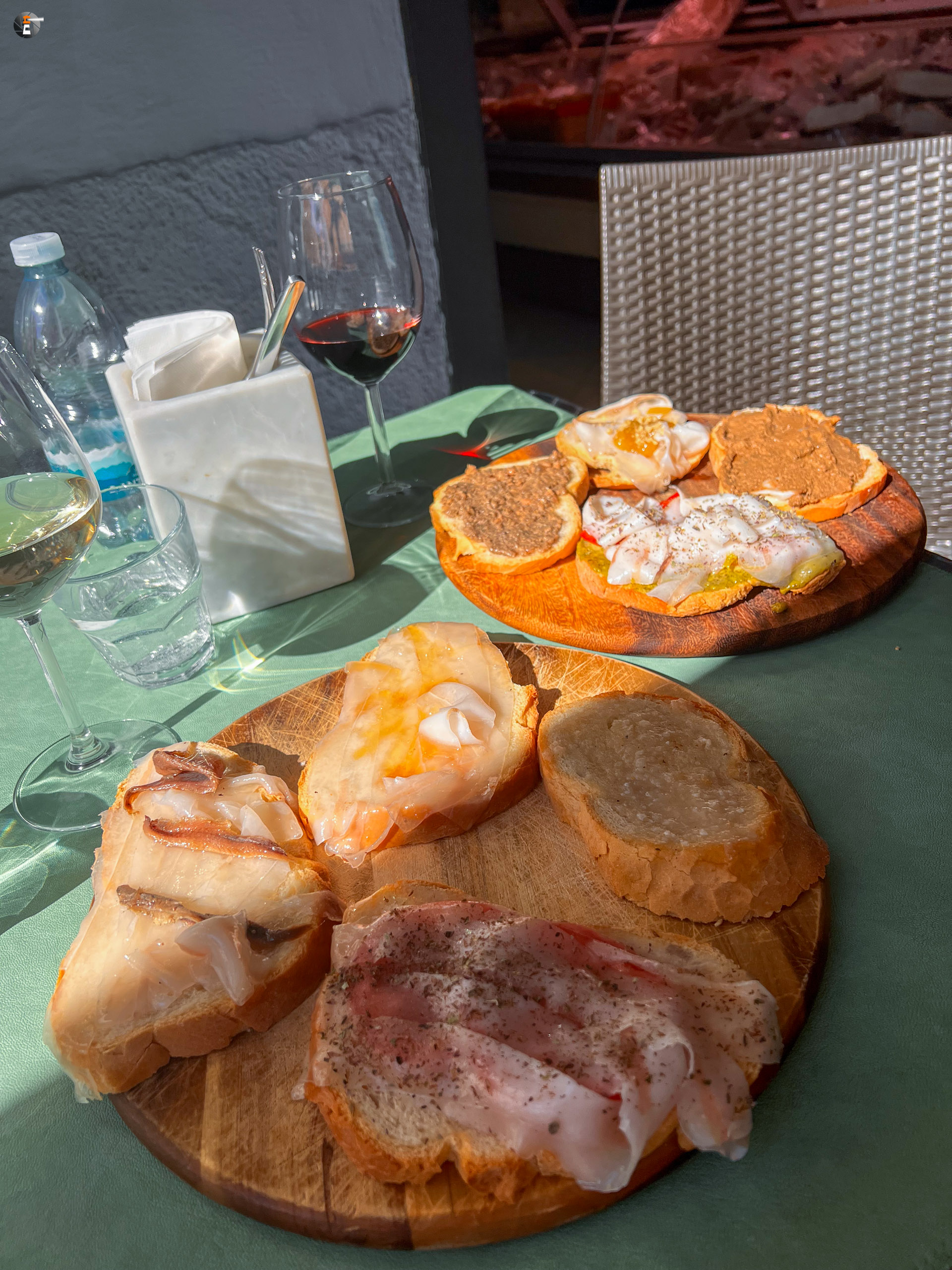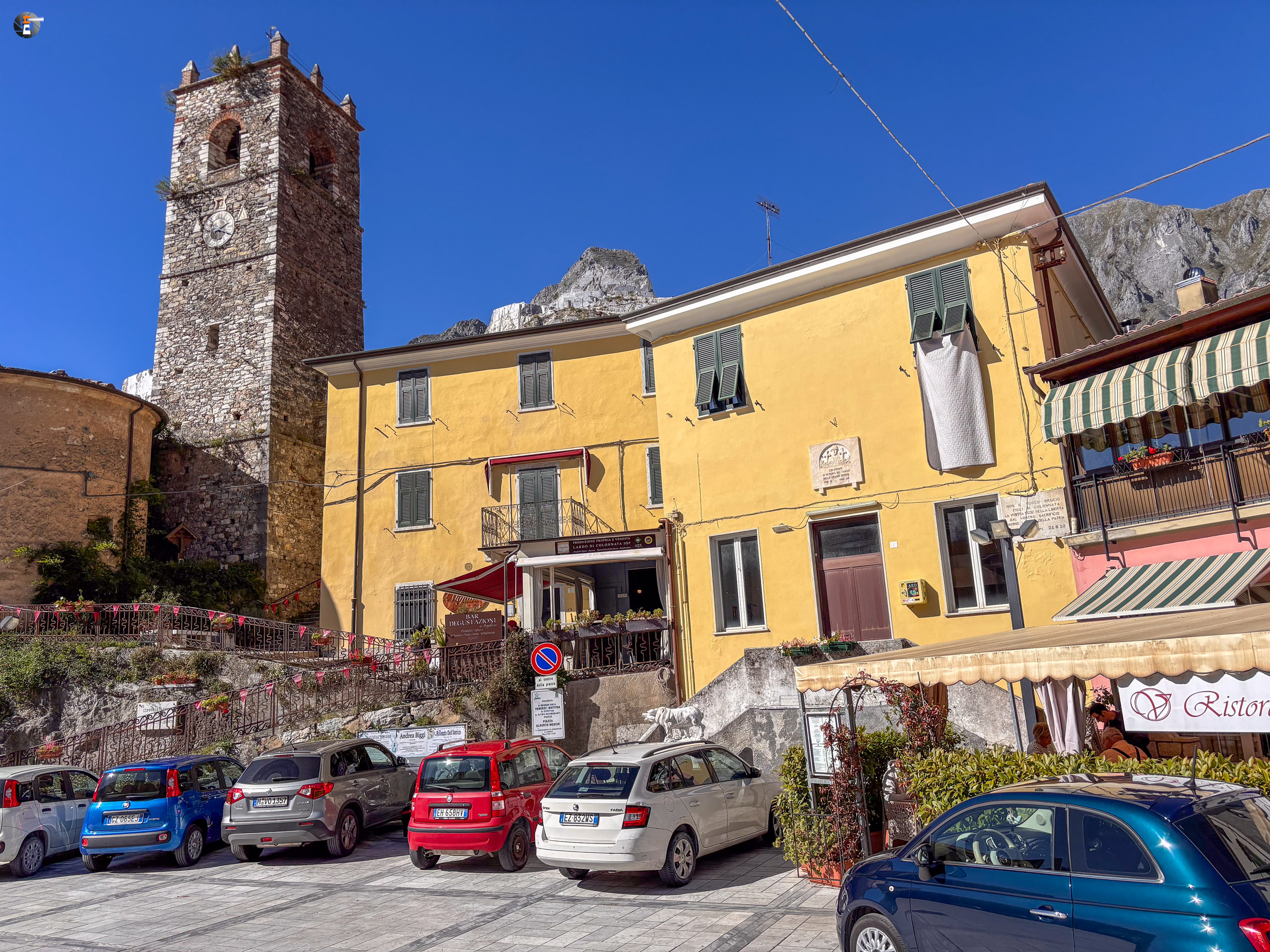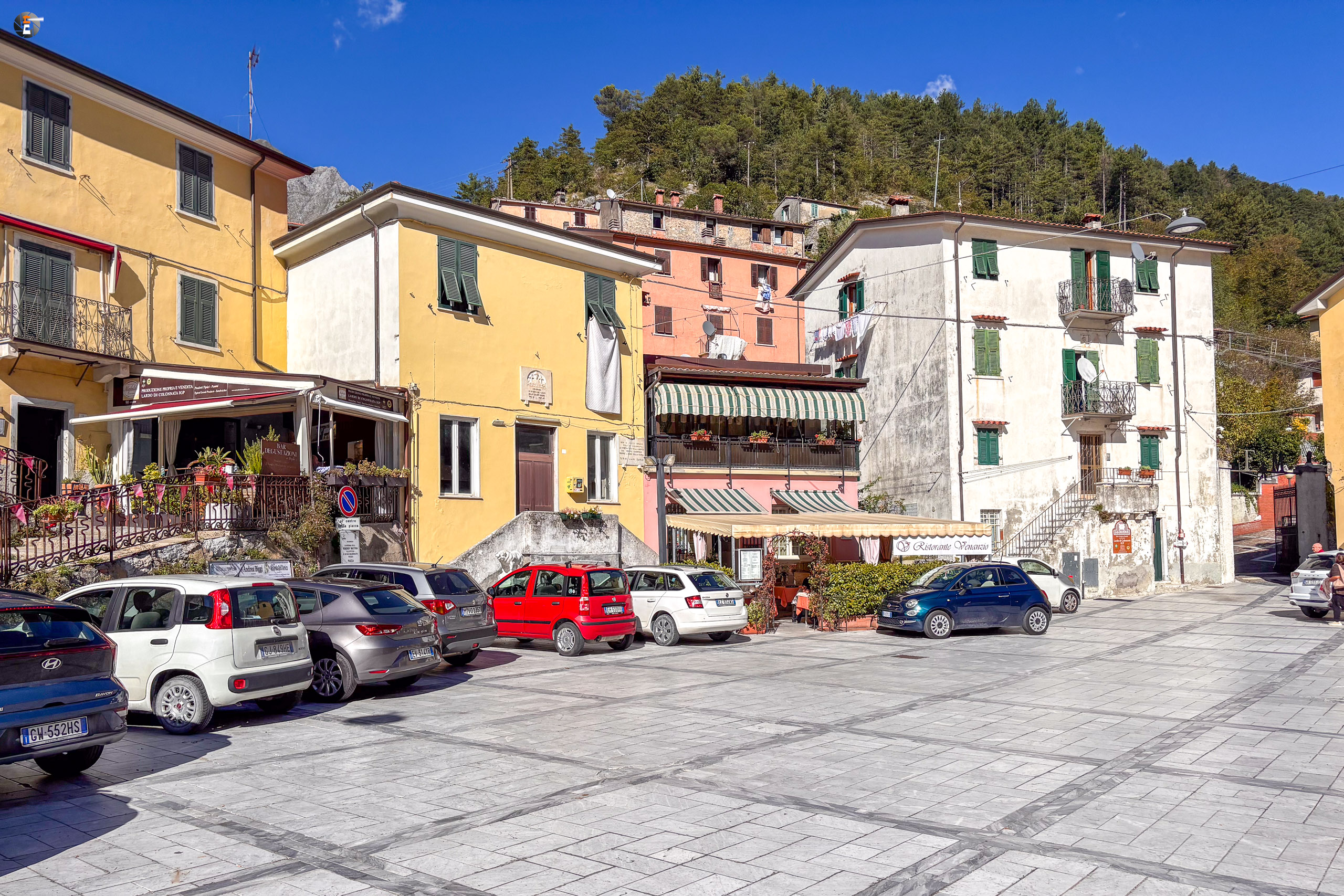 Nach Colonnata kommt man mit eigenem Fahrzeug nur außerhalb der Saison und auch heute haben wir großes Glück, den einzigen freien Parkplatz in Besitz nehmen zu können. Danach suchen wir uns nur noch eines der kleine Lokale aus, bestellen Wein und ALLE Variationen zum Genuss des Lardo.