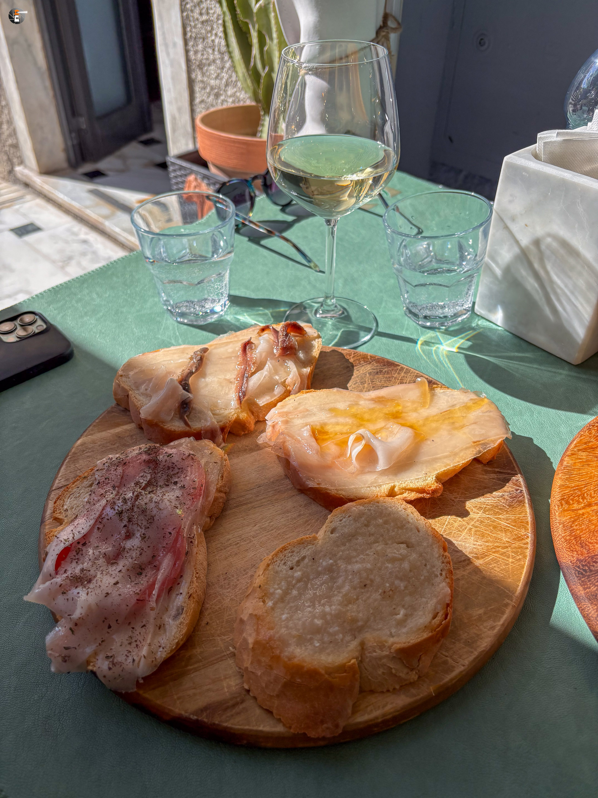 Für uns ist der Geschmack nicht wirklich neu, wir essen das auch zu Hause, das Ambiente hier lässt es aber zu einem besonderen Genuss werden. Wer dies mal zu Haus probieren möge: Klingt jetzt komisch, aber den besten Lardo in Dresden bekommen wir in unserem Lieblingskäseladen. Wer mehr wissen will, kann gern nachfragen.