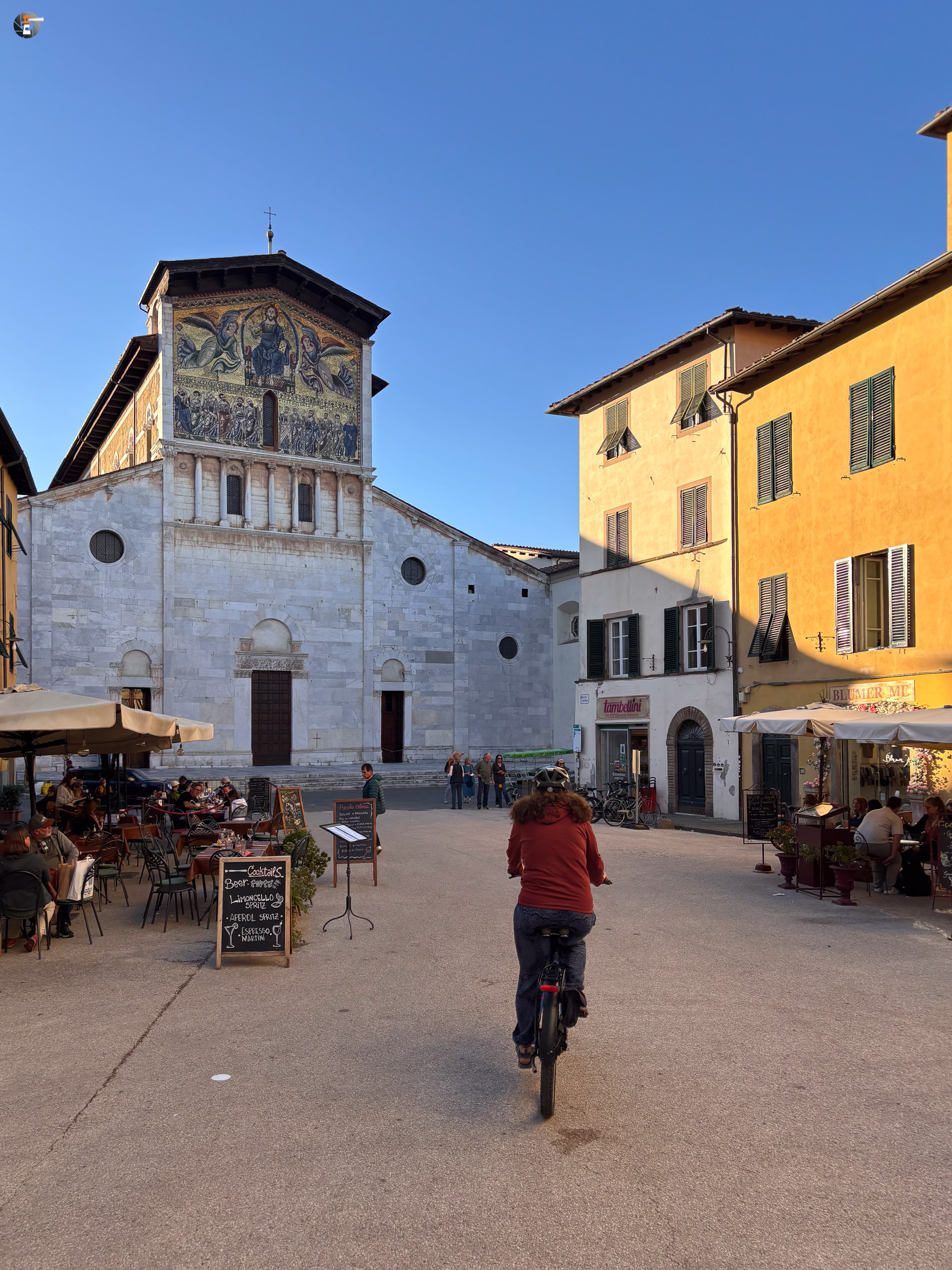 So gestärkt werden die letzten knapp 60 Kilometer kein Problem. Unser Tagesziel ist Lucca, die toskanische Stadt mit der vier Kilometer langen Stadtmauer und der eiförmigen Piazza dell Anfiteatro, welcher, der Name verrät es, vor zweitausend Jahren noch römische Kultstätte war. In Orten wie Nîmes blieb die Arena erhalten, anderenorts diente sie als Steinbruch, die Lucchesi bauten einfach ihre Häuser hinein, sodass uns nur noch die Eiform des Platzes an die römische Arena erinnert.