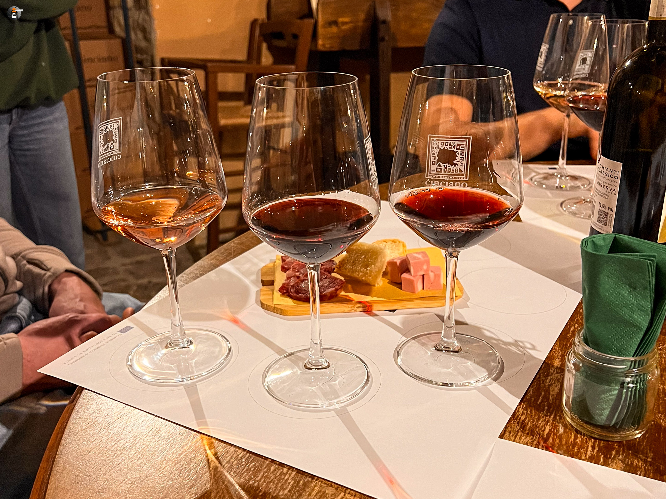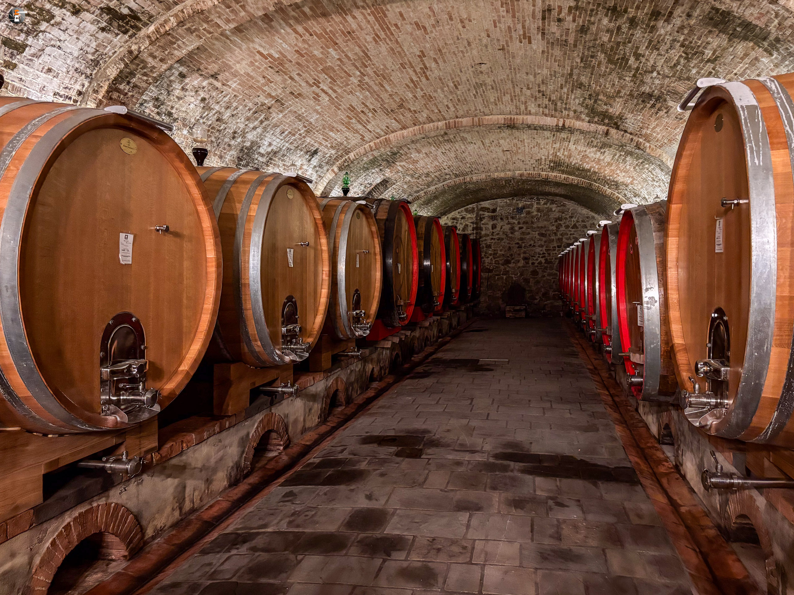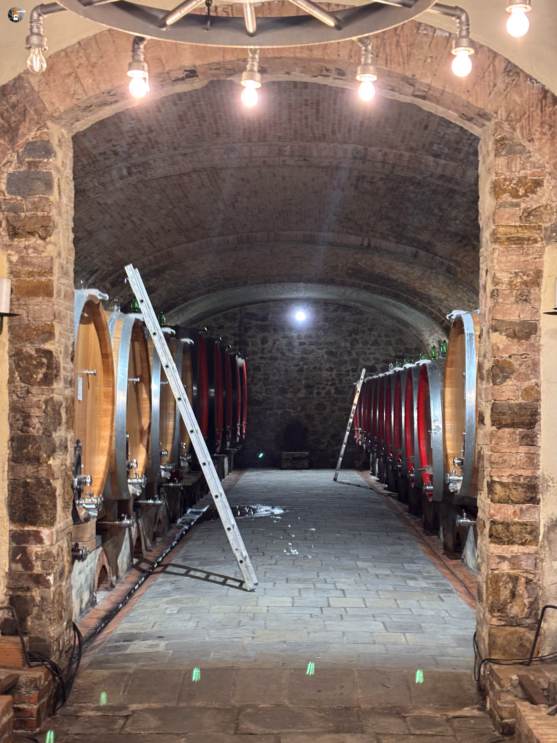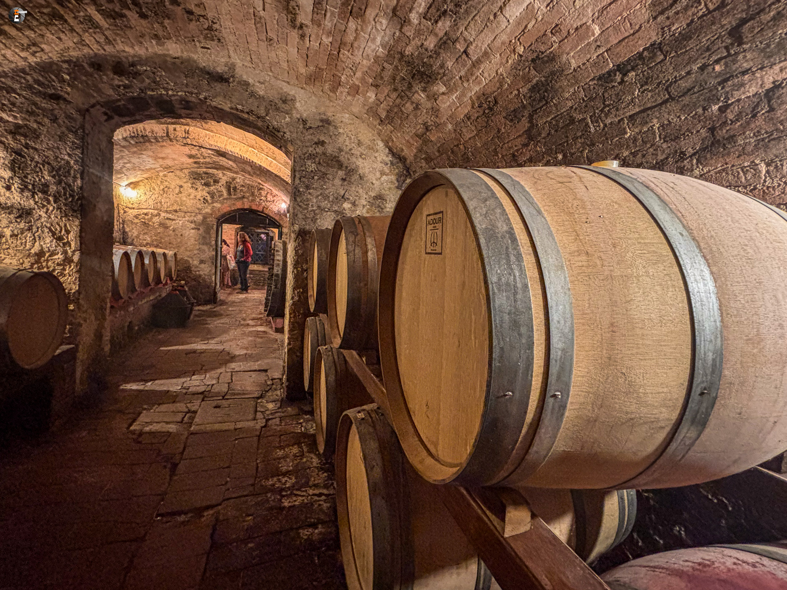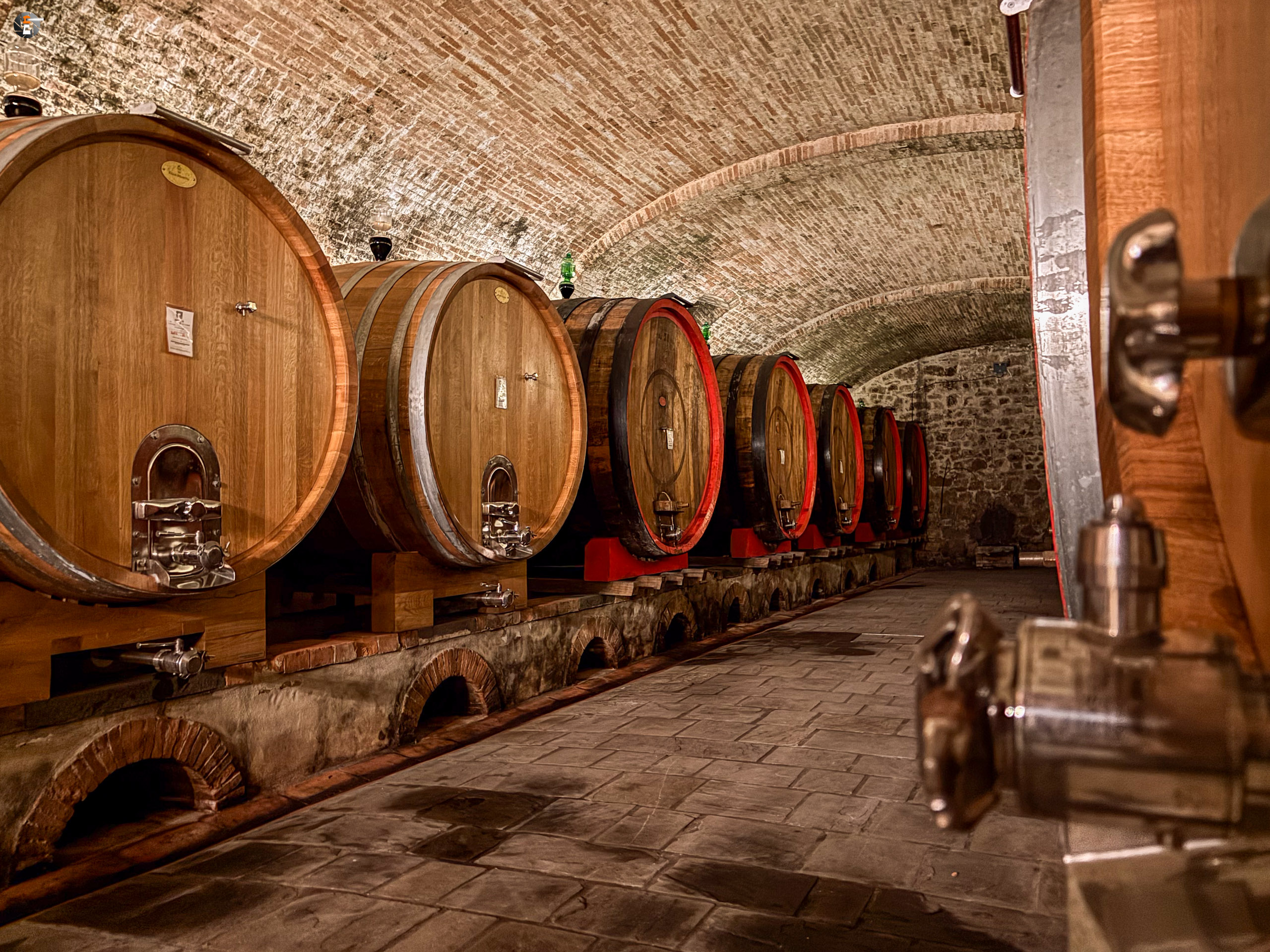 Für den Abend haben wir noch eine Führung durch den Weinkeller mit anschließender Verkostung gebucht. Gemeinsam mit einer Familie aus Polen bekommen wir dann die doch wesentlich größeren Hallen und Fässer vorgeführt. Im Anschluss geht’s dann zur Verkostung. Es gab zusätzlich zu den zwei Rotweinen zuerst einen in Weiß und in Rosé. Wer mich kennt, ahnt, dass mir diese beiden besser geschmeckt haben, aber ich muss auch sagen, vielleicht hätte man den Rotweinen auch noch ein bisschen mehr Zeit geben müssen. Soweit ich mich richtig erinnere, kommt der Brunello di Montalcino nicht vor 5 Jahren in den Verkauf. Da sollten die Leute beim Chianti mal drüber nachdenken 😉