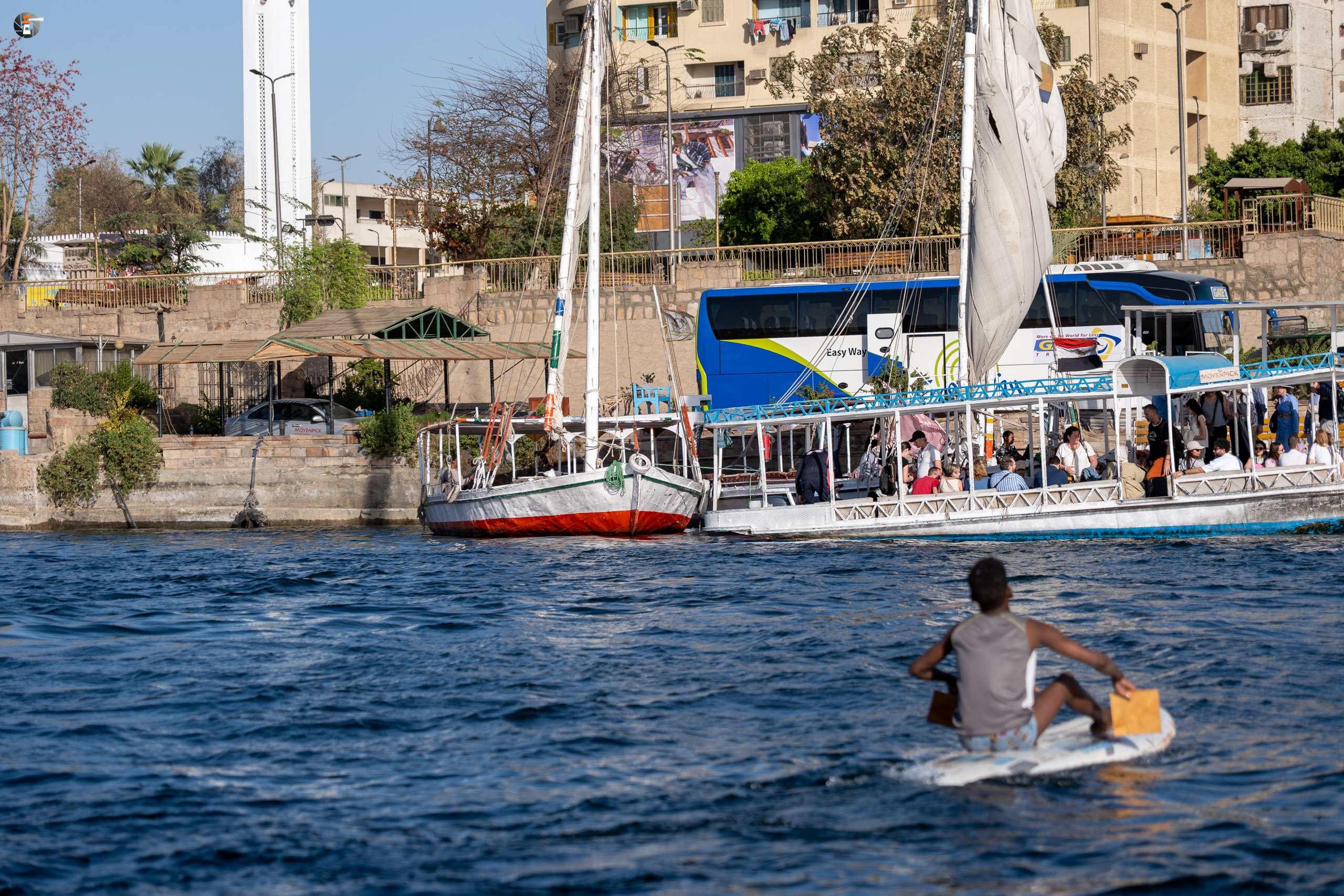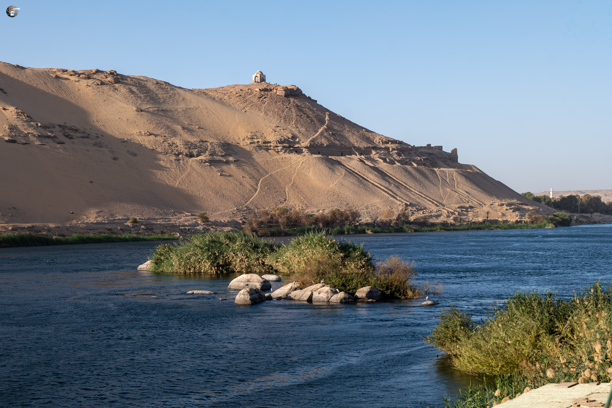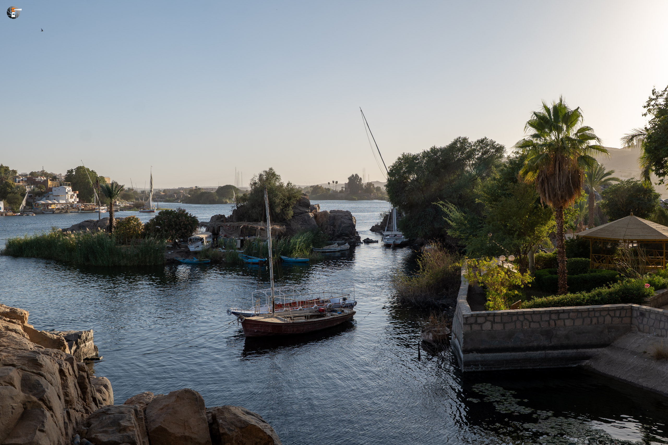 Das Restprogramm sollte aus drei Teilen bestehen: Einer Felukenfahrt über den Nil, den Besuch von Kitchener Island und einer Bootsfahrt durch die Stromschnellen des 1. Kataraktes. Die ersten beiden Punkte gehören zum Inklusivprogramm, der letzte Punkt ist fakultativ, wird aber von allen Reisetauglichen wahrgenommen. So ganz unschuldig sind wir daran nicht, zeigen wir doch Bilder, wie es vor 16 Jahren in diesem Naturschutzgebiet war.