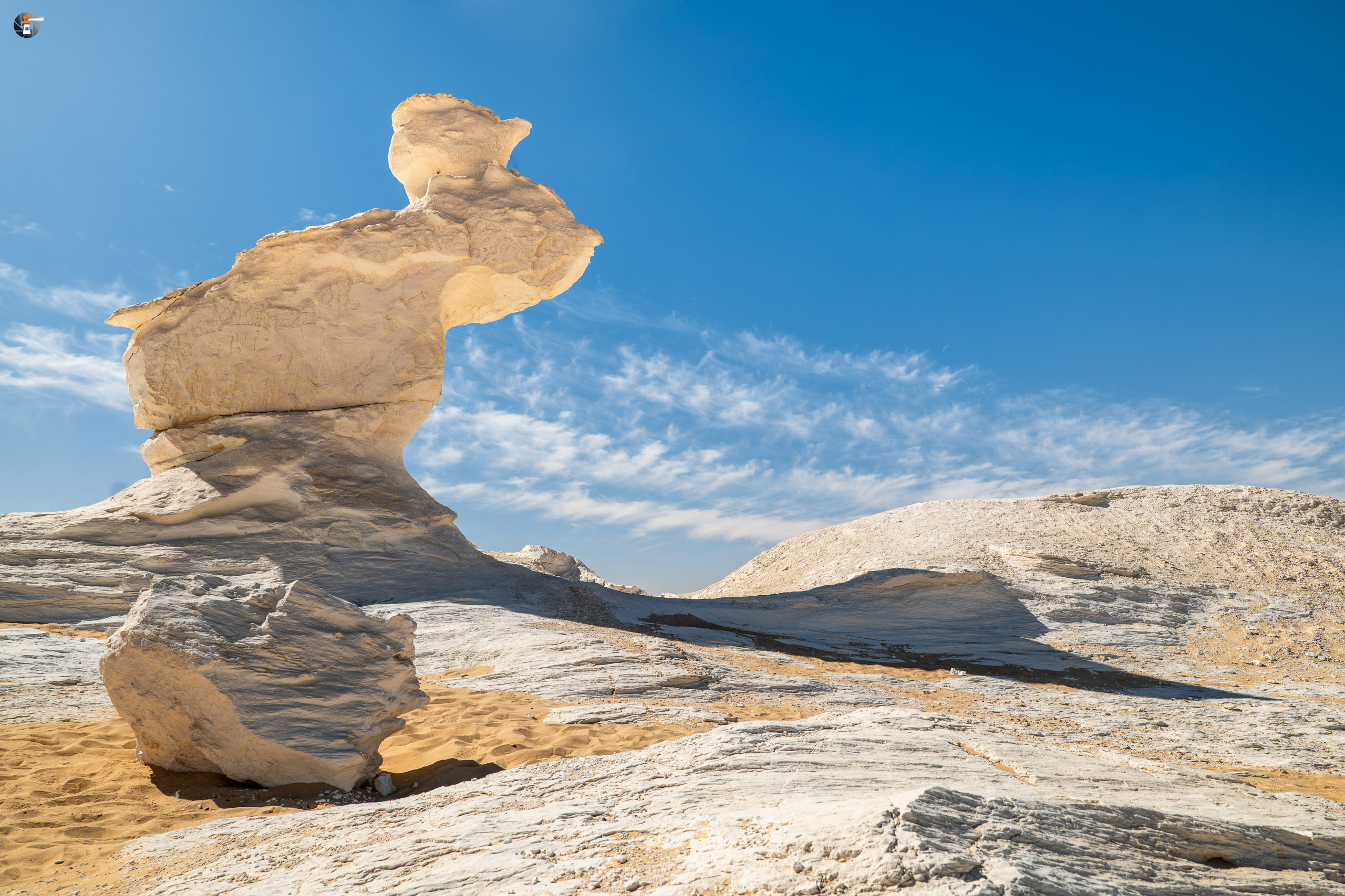Gegen 8:30 Uhr war es dann soweit und wir konnten losfahren. Die ganze Zeit sahen wir schon die Formationen der weißen Wüste am Horizont und endlich in die Nähe gekommen, konnten wir sie auch bestaunen. Ein Stück liefen wir durch die Gegend, um dann an der Hauptattraktion „Mushroom & Chicken“ rauszukommen.