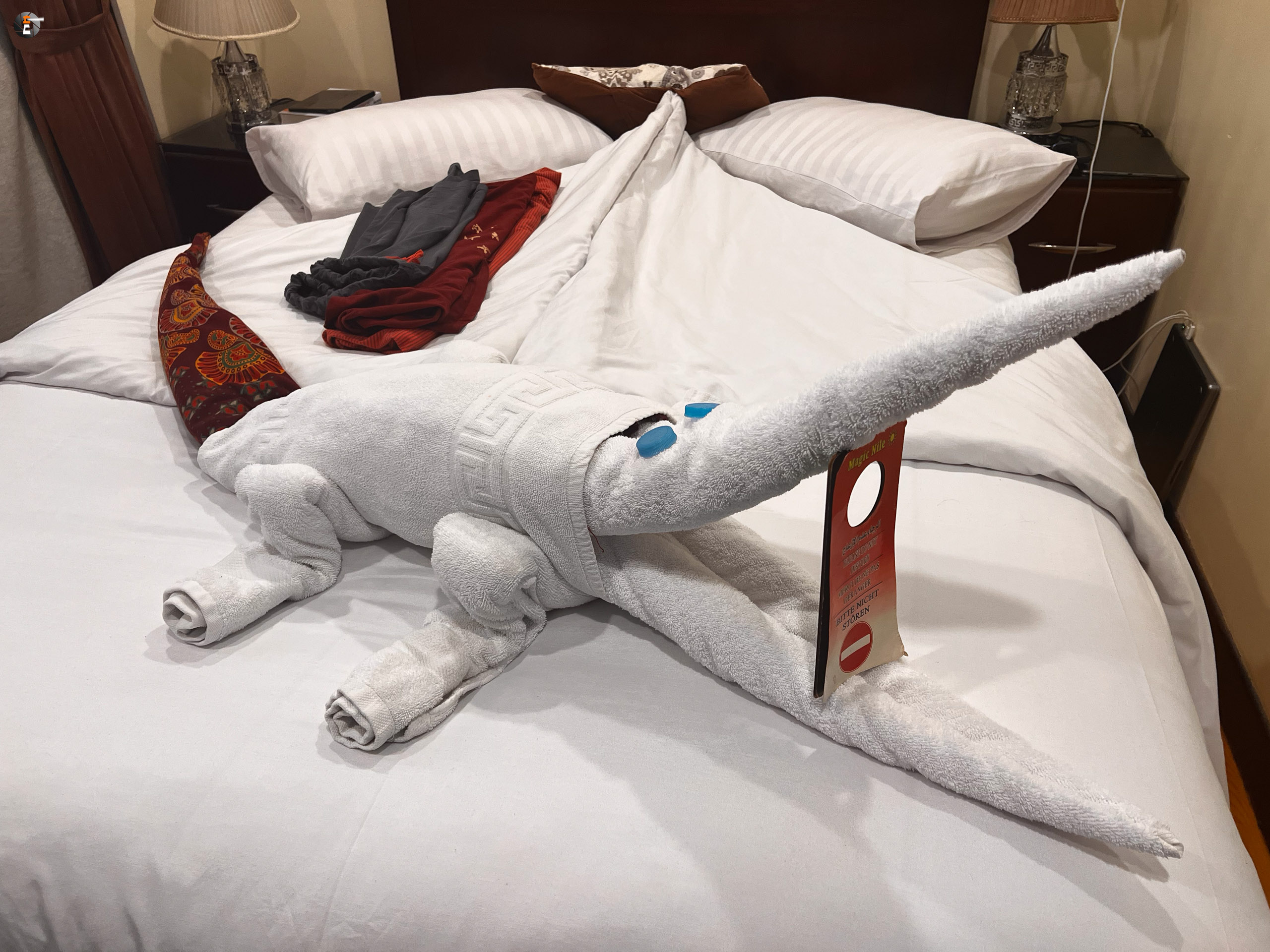 Ich bleibe allein mit der Crew zurück. Da die Besatzung immer so unauffällig agiert und unsichtbar wird, gehört das Schiff quasi mir. Ich lege mich auf Deck hin und schlafe schnell ein. Ein wirrer Traum begleitet mich. Ich träume Versatzstücke aus Agatha Christies Tod auf dem Nil. Im Roman löst sich ein Felsbrocken bei der Besichtigung des Temples von Abu Simbel, in meinem Traum ist es der Horustempel von Edfu. Ich hoffe, Eva wird nicht von herabstürzenden Steinen getroffen…
