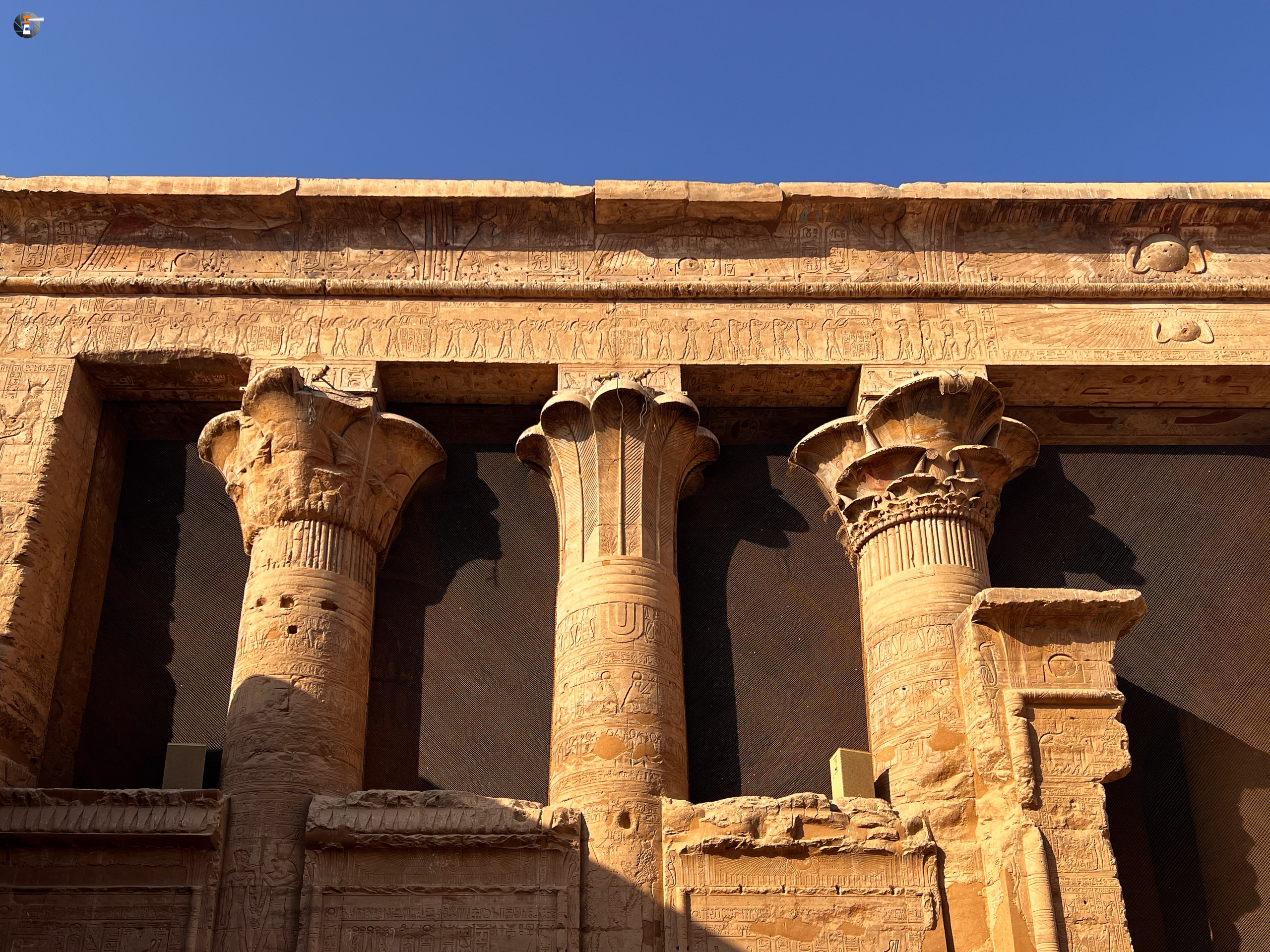 Inzwischen wird das Frühstück serviert. Dann habe wir viel Zeit für Gespräche, für Nichtstun oder was auch immer. Der erste wirkliche Programmpunkt des Tages ist der Horus-Tempel in Edfu. Kurz bevor wir anlegen, zwingt mich eine Rebellion meiner einzelligen Mitreisenden zum Bleiben. In Scharen desertieren sie, und das, obwohl ich das Heer schon seit einigen Tagen vor dem Urlaub mit Söldnern unterstütze. Mich überfällt spontane Appetitlosigkeit und Schlaffheit, in mir tobt eine Schlacht. Den Ausflug zum Tempel spare ich mir vorsichtshalber. Ich wurde nicht als erster mit dem Fluch des Pharaos belegt, Eva hat einen halben Tag Vorsprung. Ihr geht es schon wieder hinreichend gut, andere werden noch folgen.