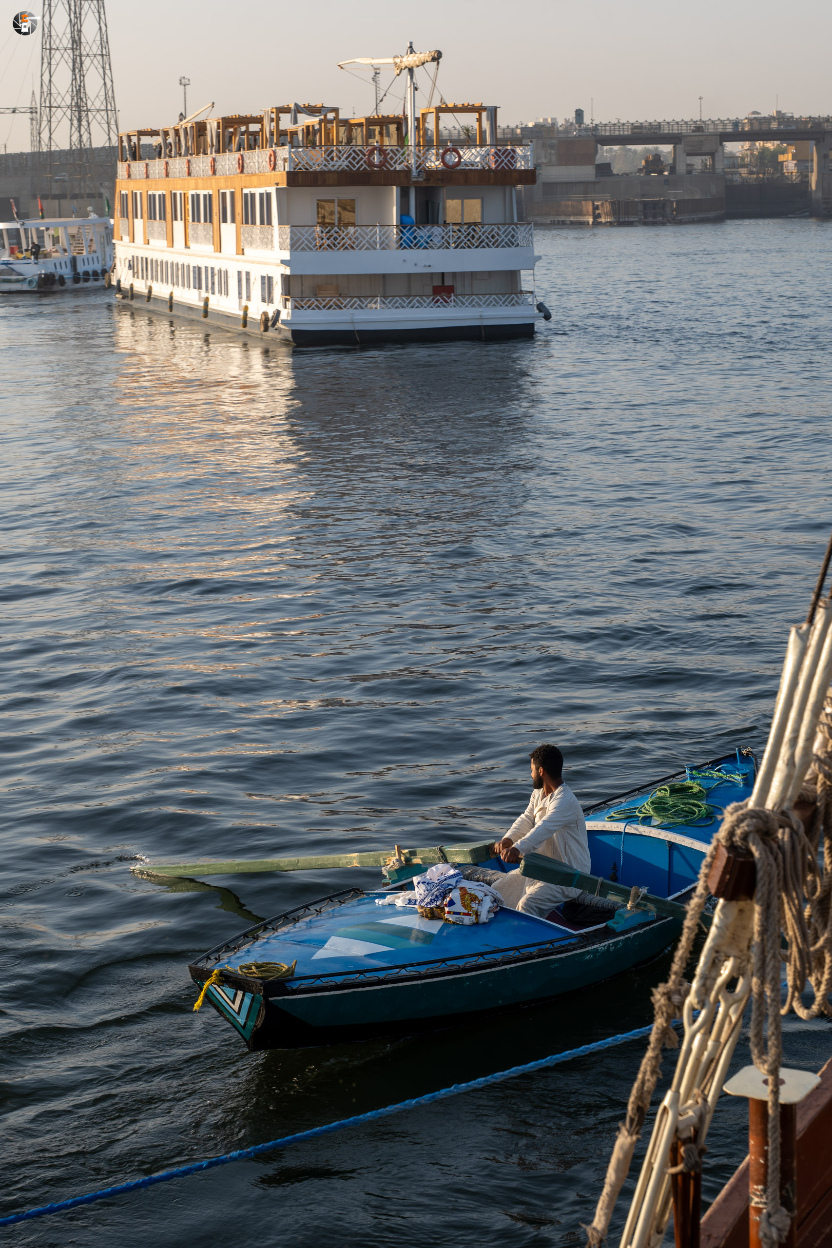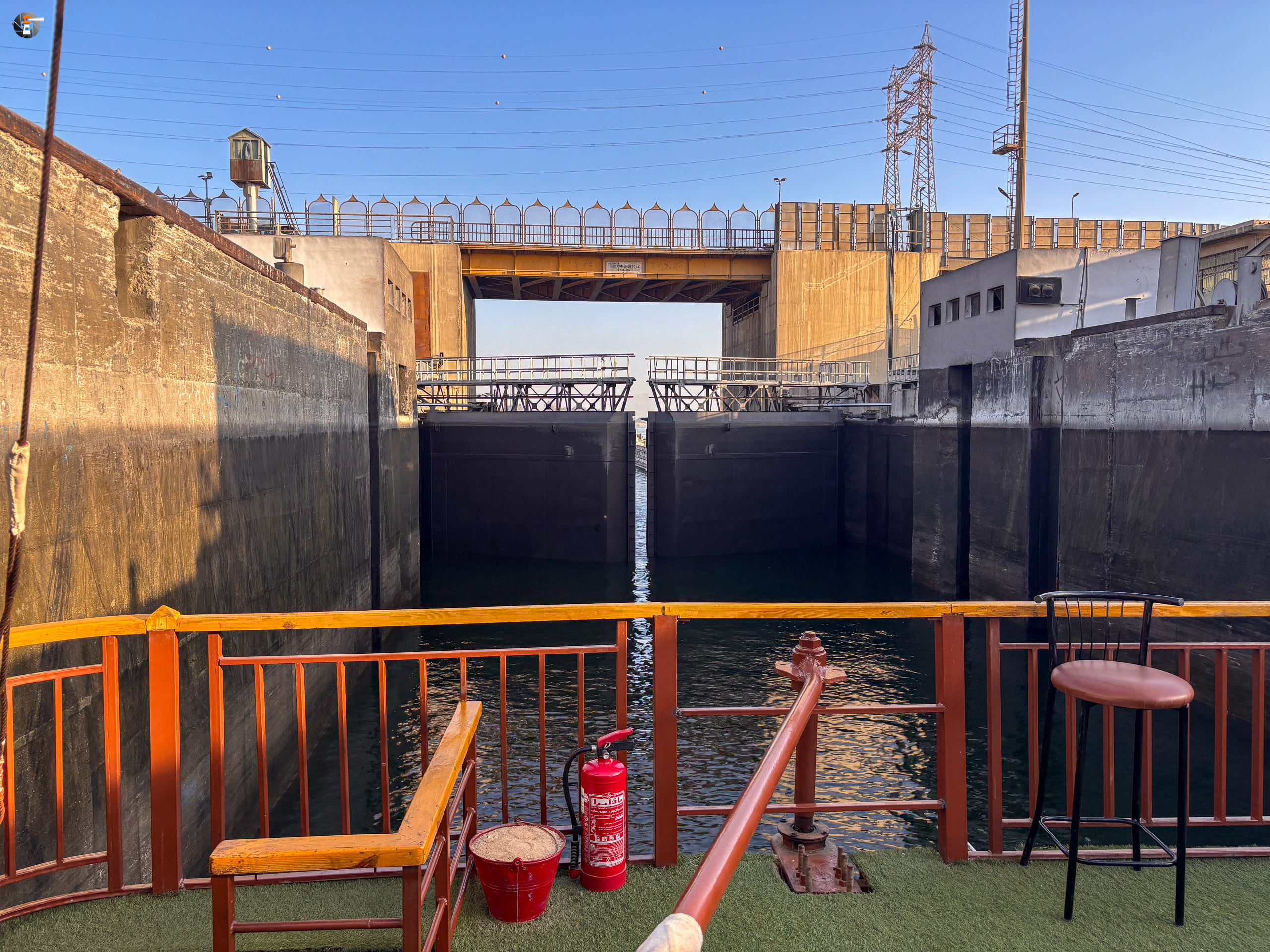 Der Tag beginnt ruhig. Zeitig aufgestanden sind wir trotzdem. Der erste Höhepunkt ist die Schleusung unserer Dahabeya in Esna. Das ist für die Mannschaft gar nicht so einfach, da das Schiff keinen eigenen Antrieb hat und immer vom Schlepper in die passende Richtung gezogen oder geschoben werden kann. Die Mannschaft macht das routiniert, dass das Schiff im Wochentakt durchgeschleust wird, merken wir.