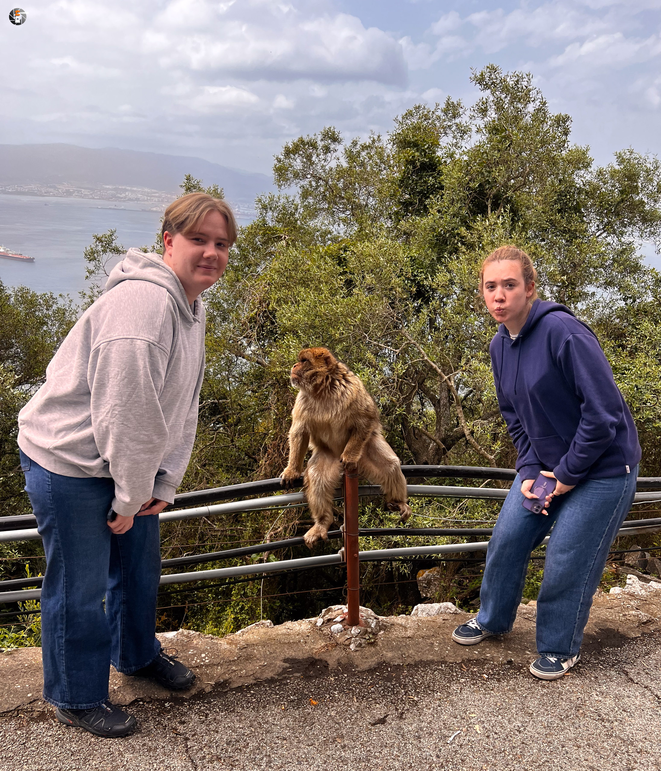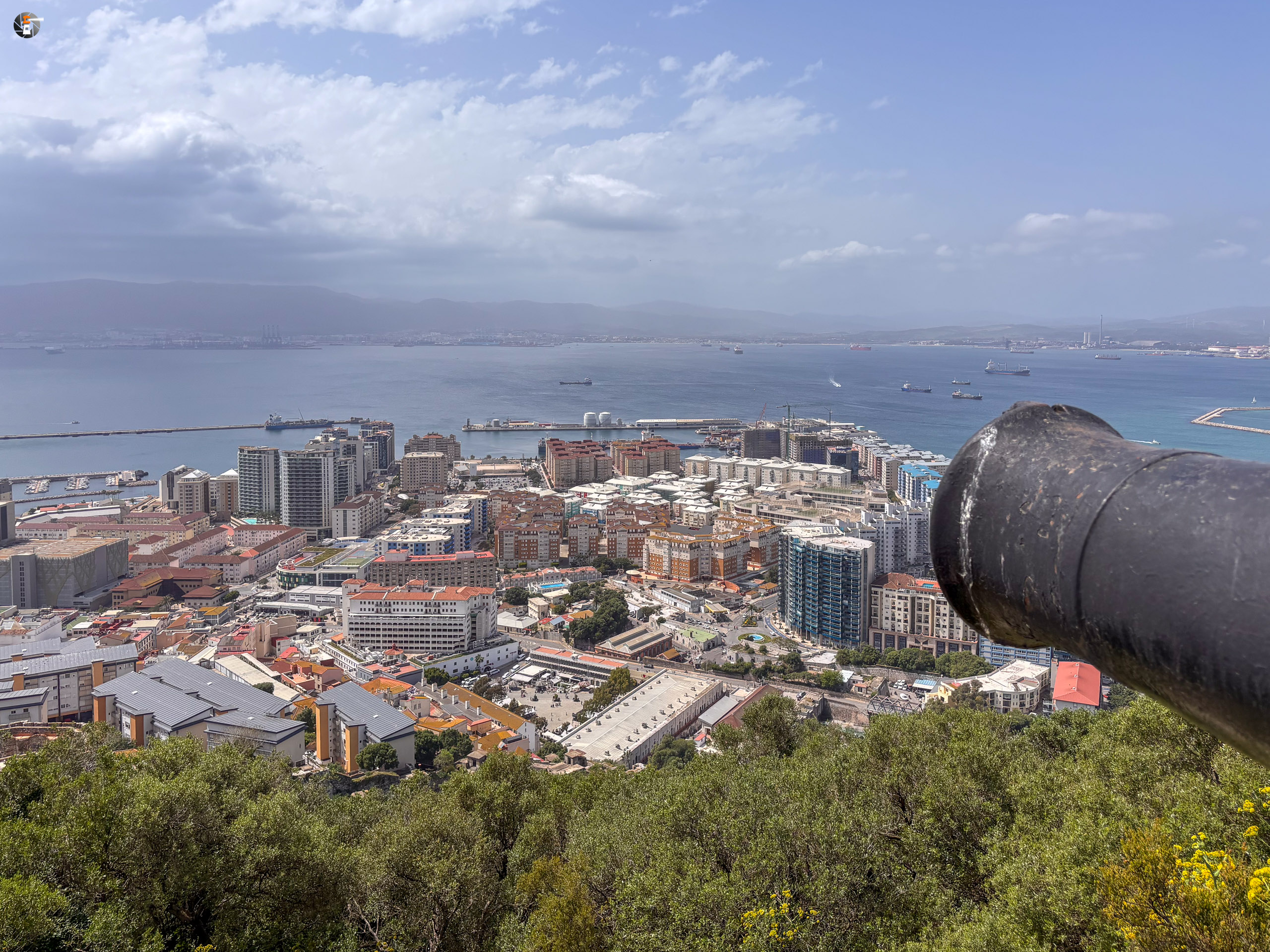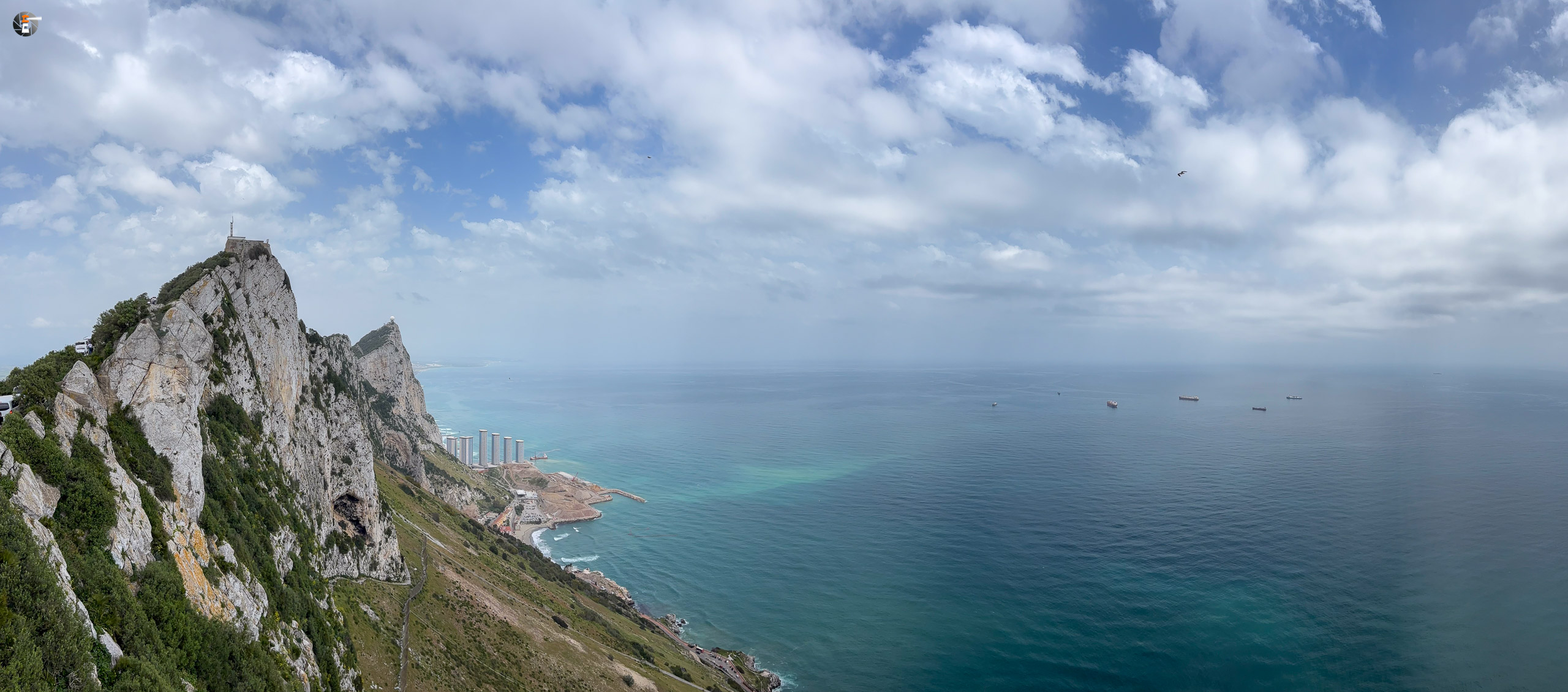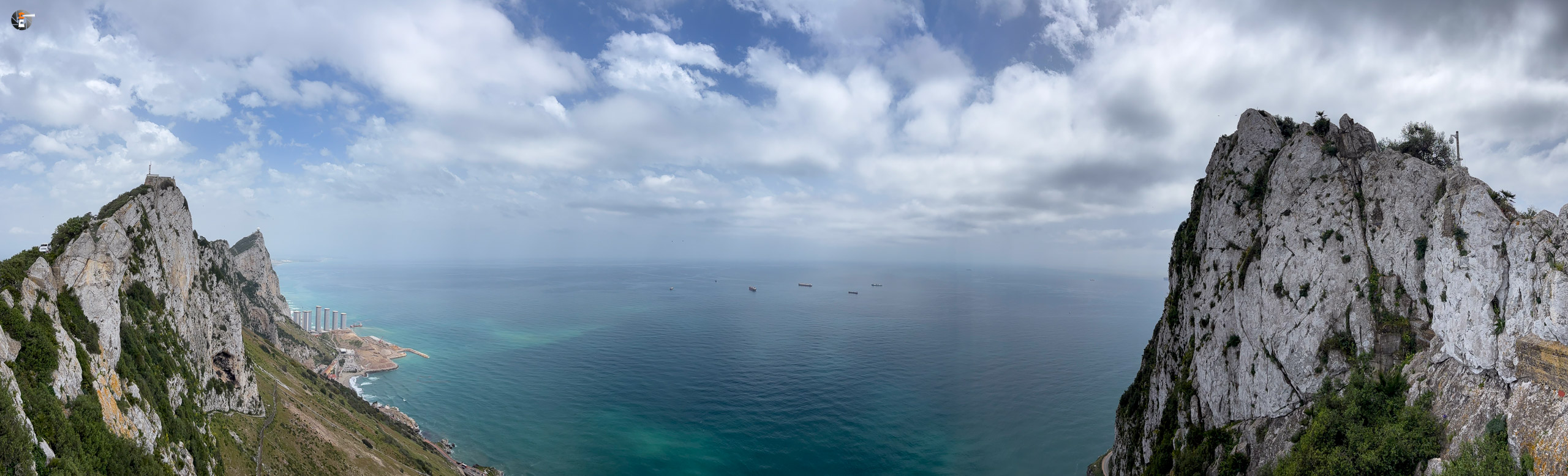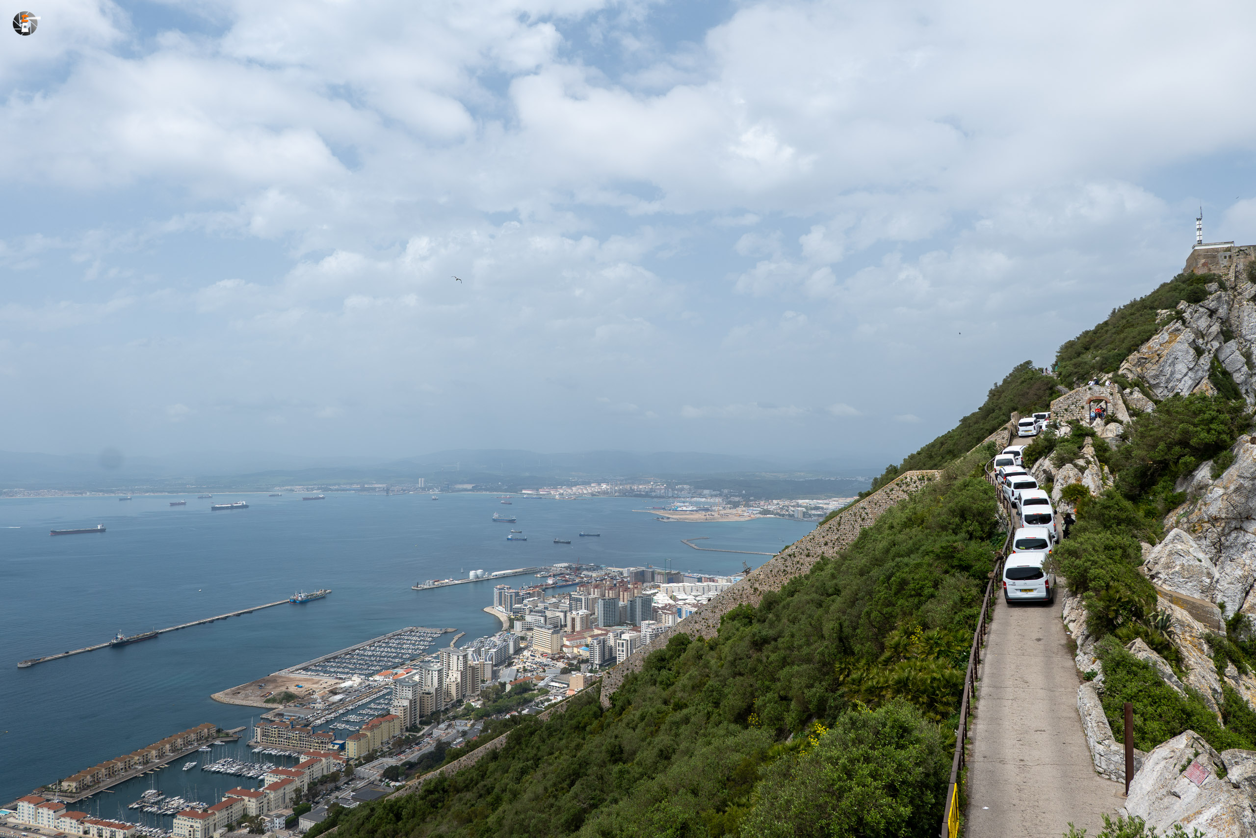 Mit dem Bus im Zentrum angekommen, schlendern wir durch die historische Altstadt und laufen einem Anbieter für eine „Rock Tour“ in die Arme. Die Kosten sind niedriger als für die Bikes, teuer ist es trotzdem. Aber so bekommen wir in zwei Stunden das komplette Touriprogramm mit der Säule des Herakles, Michaels Cave und dem Skywalk oben auf dem Felsen. Das Wetter wird jede Minute besser, dank stellenweise blauem Himmel leuchten auch die beiden Meere, oder wie Eva sich ausdrücken würde: das eine richtige Meer und das Meerchen, in der gleichen Farbe wie der Himmel, zumindest wenn wir Wasser sehen, denn eigentlich ist es zwischen den vielen Schiffen fast unsichtbar. Unseren beiden jungen Mitreisenden machen wir immer wieder klar, dass die Küste auf der anderen Seite des Wassers ein anderer Kontinent ist – wir sehen Afrika. Auch für uns, die schon mehr als einmal auf diesem Kontinent unterwegs waren, ist es immer wieder faszinierend, das so zu sehen.